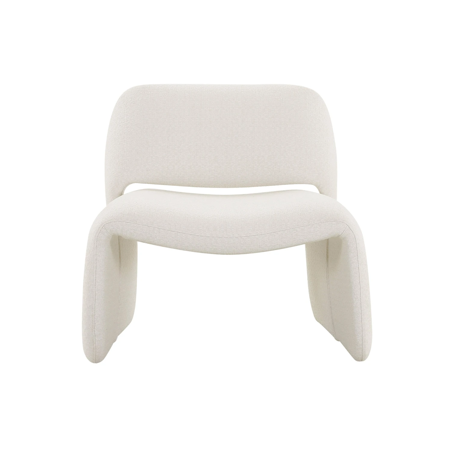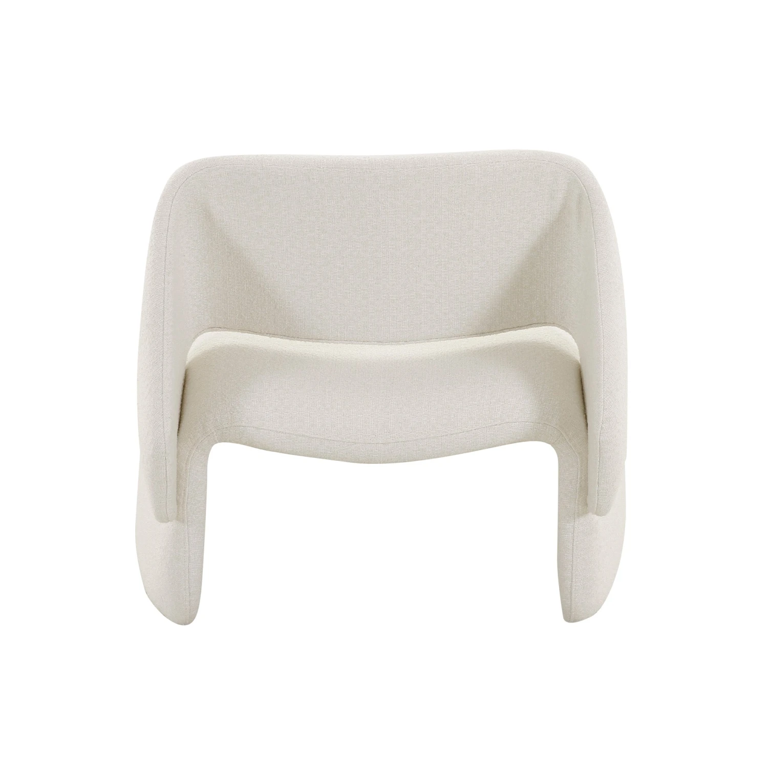 Circular brass detailing sets off sinuous waterfall curves in the design of our Bar Back Chair. Featuring a texture-rich ivory woven fabric that begs to be lounged upon, this chair is the perfect place to serve some lewks while you serve your cocktails.