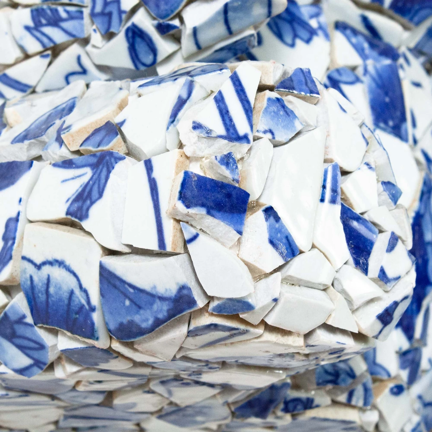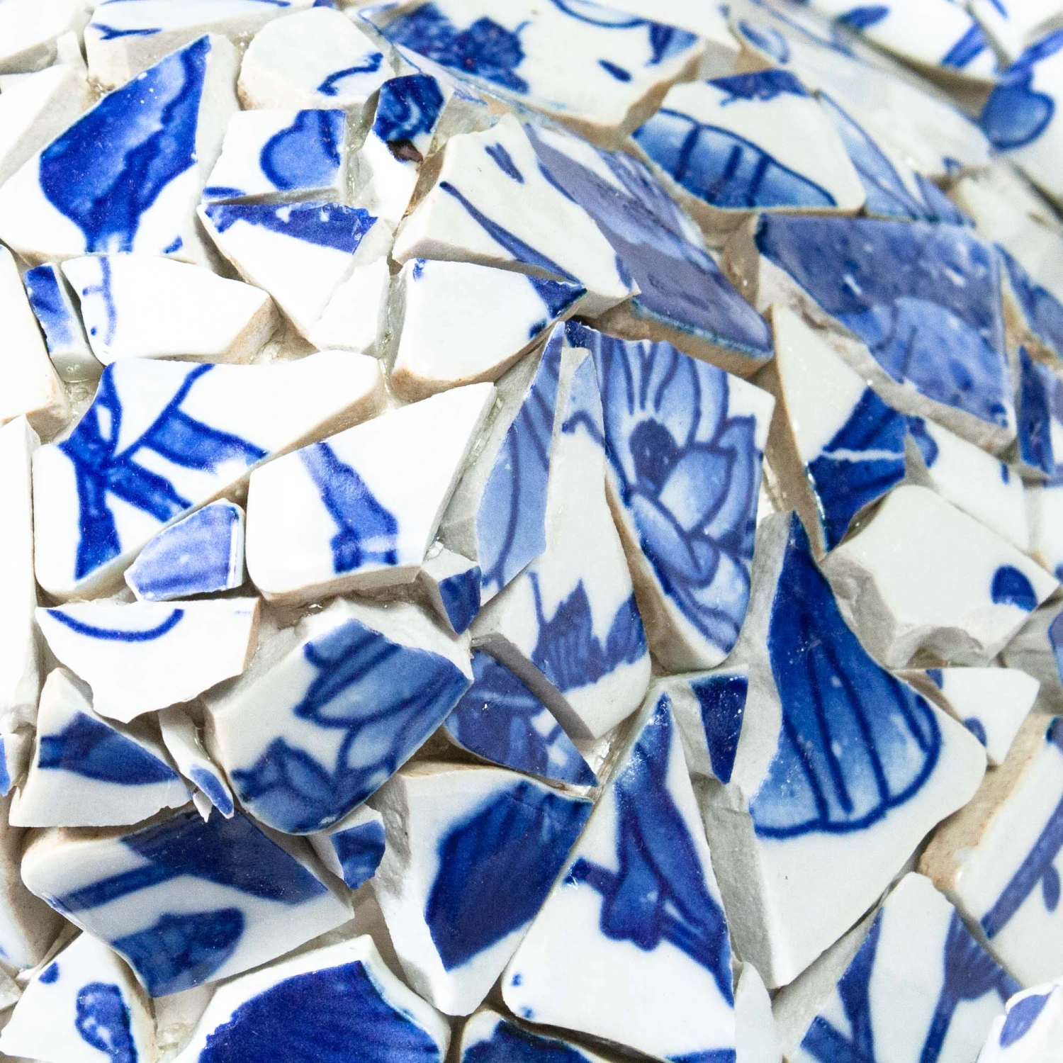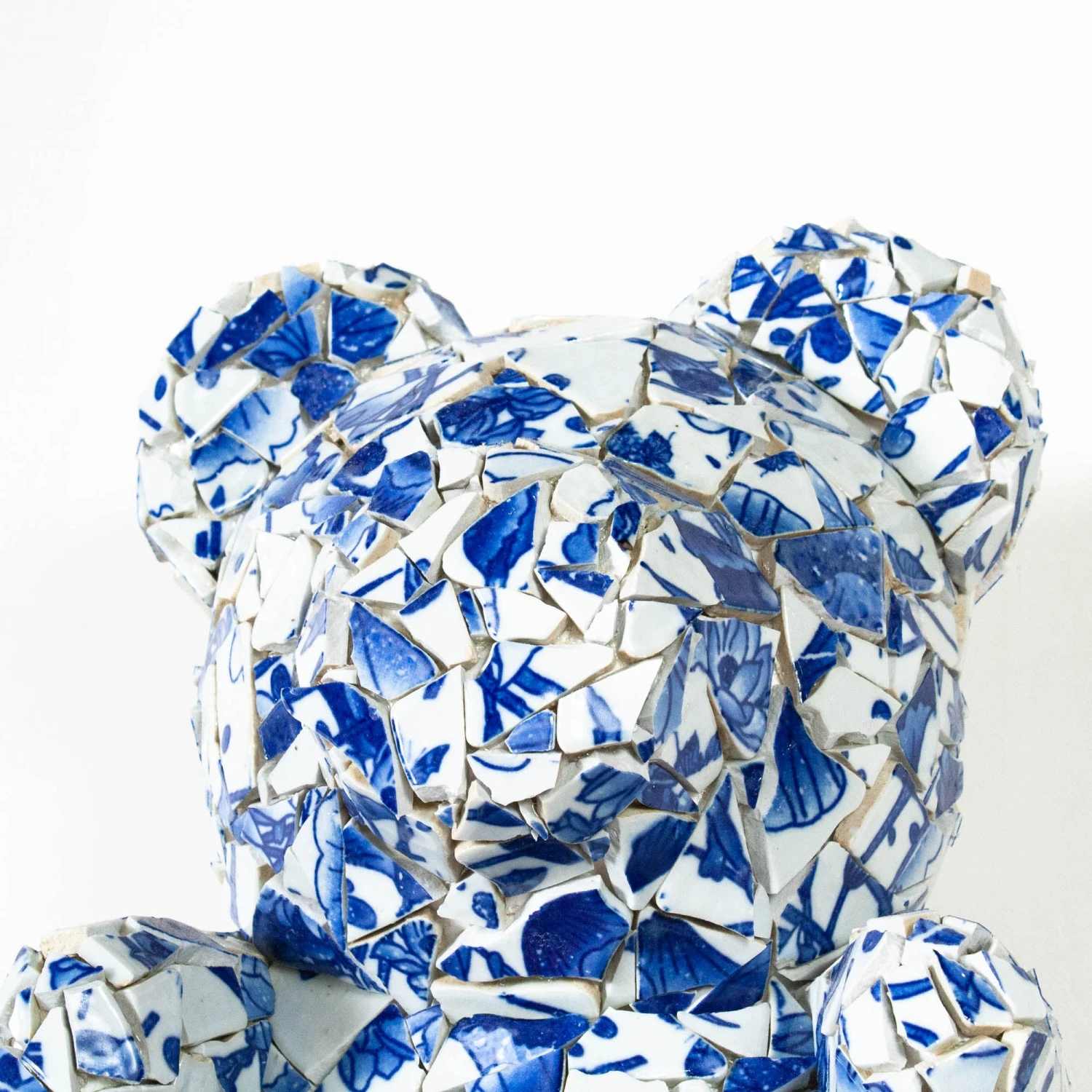 Shattered ginger jar pieces individually placed on a bear sculpture. Comes with mount on back for hanging.