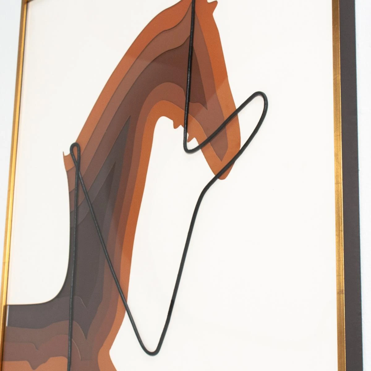 Majestic and intriguing. This simple but stunning piece is perfect in any home. Hand cut pieces shaped like a horse and framed in a gold frame.