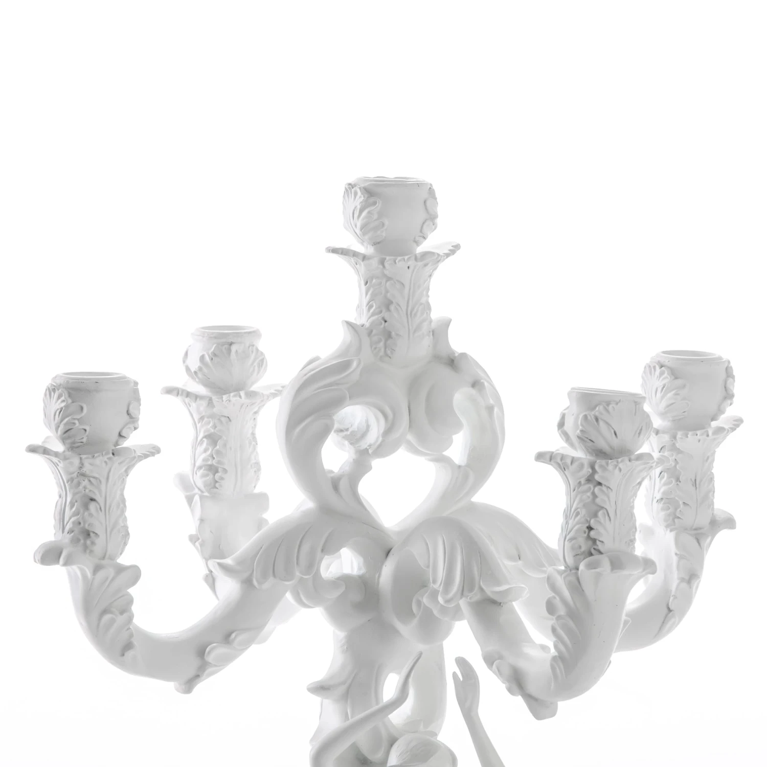 Candelabra that represent the fusion between baroque and the most provocative burlesque subjects. Made from polyresin.