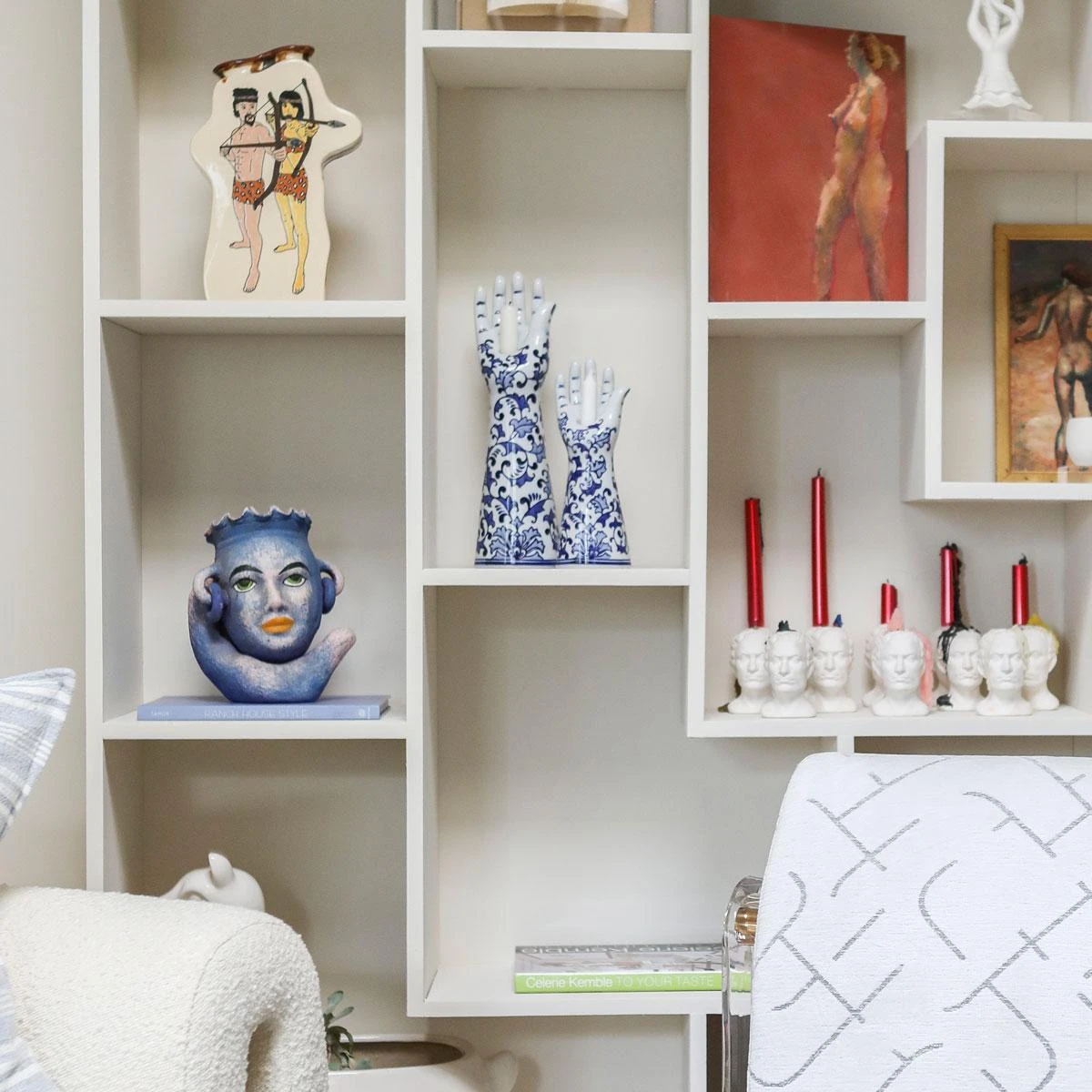 This candle holder embodies the style Pols Potten is known for. Witty and at the same time classic. The Delft Blue like decoration on the arm shaped candle holder brings tattooing to the next level. Express yourself and keep the fire burning!