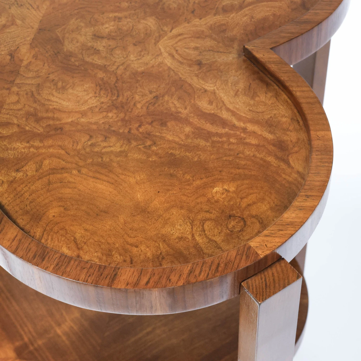Our Clover Bar Cart features gentle curves that form the shape of a lucky four leaf clover. A double tier provides extra room to show off your favorite bottles and glasses, while brass castors make moving this pretty piece a breeze. With a chic mixed wood finish showcasing burl on the top shelf and walnut on the bottom, this piece has twice the visual intrigue and organic beauty.