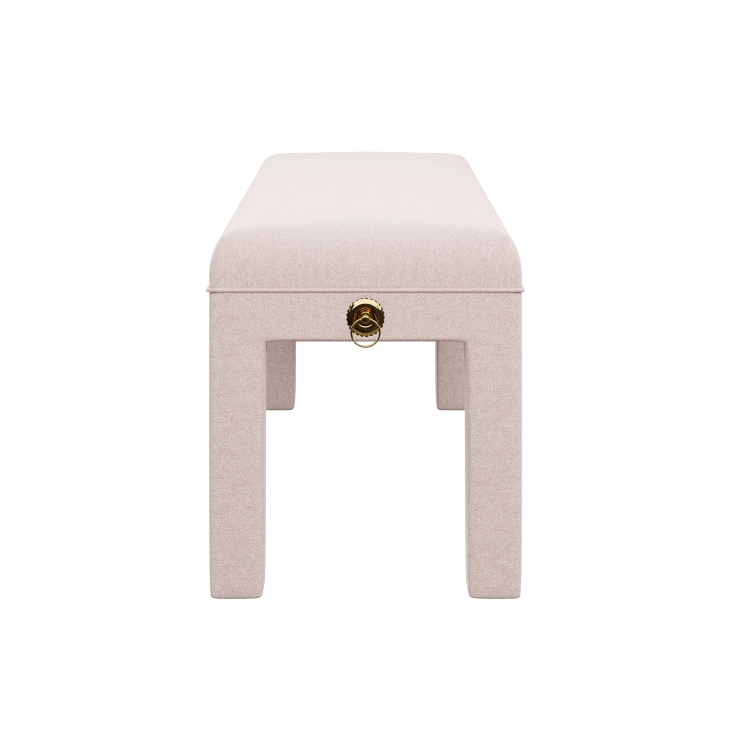 Our Custom Arden Bench features a classic Parsons frame accented with brass ring hardware that sets this bench apart from any other. Make it in a simple blush velvet, or go wild with a pattern and contrast welting – we can’t wait to see your vision! Â