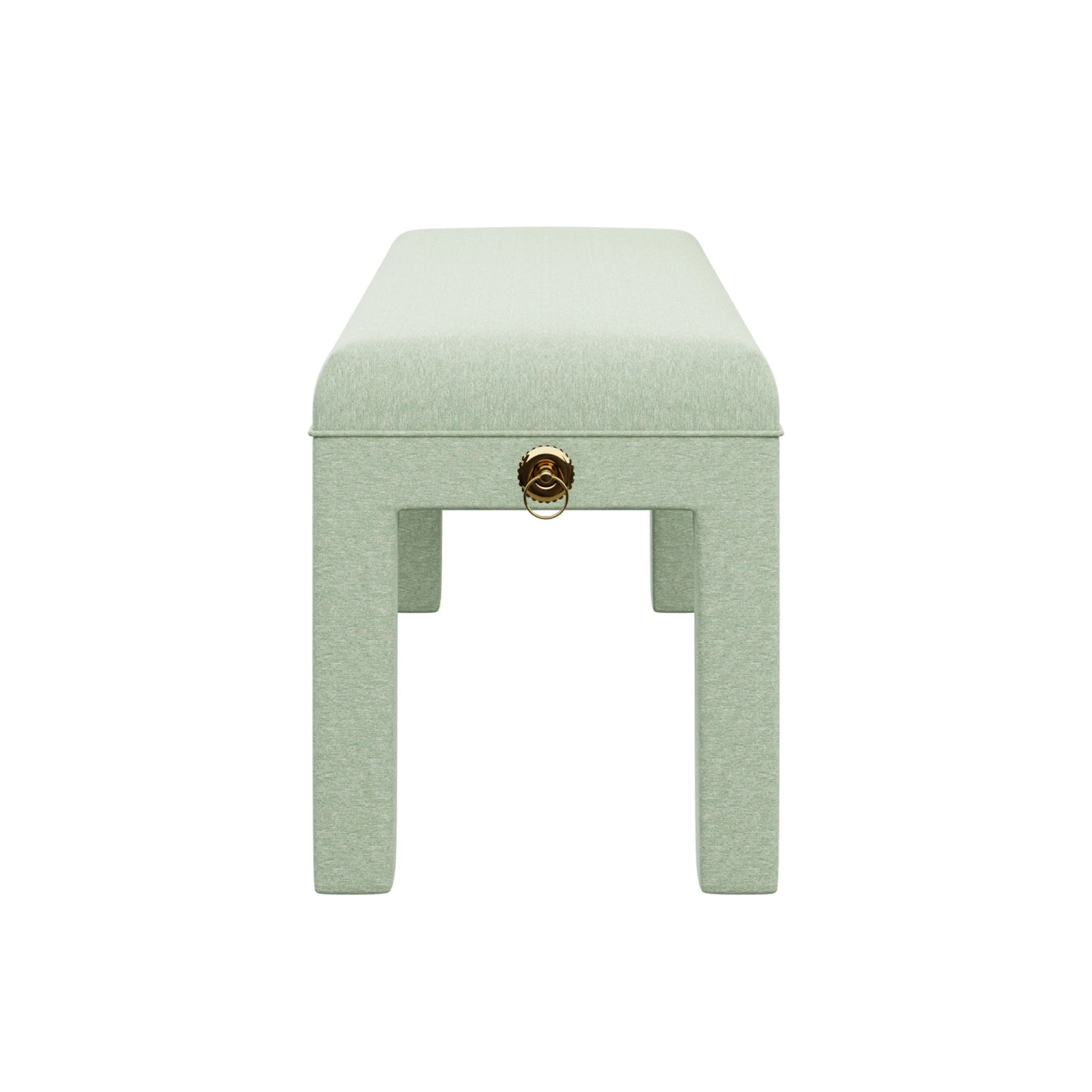 Timeless with a touch of brass. This custom upholstered bench is made to order in the fabric of your choosing.Â