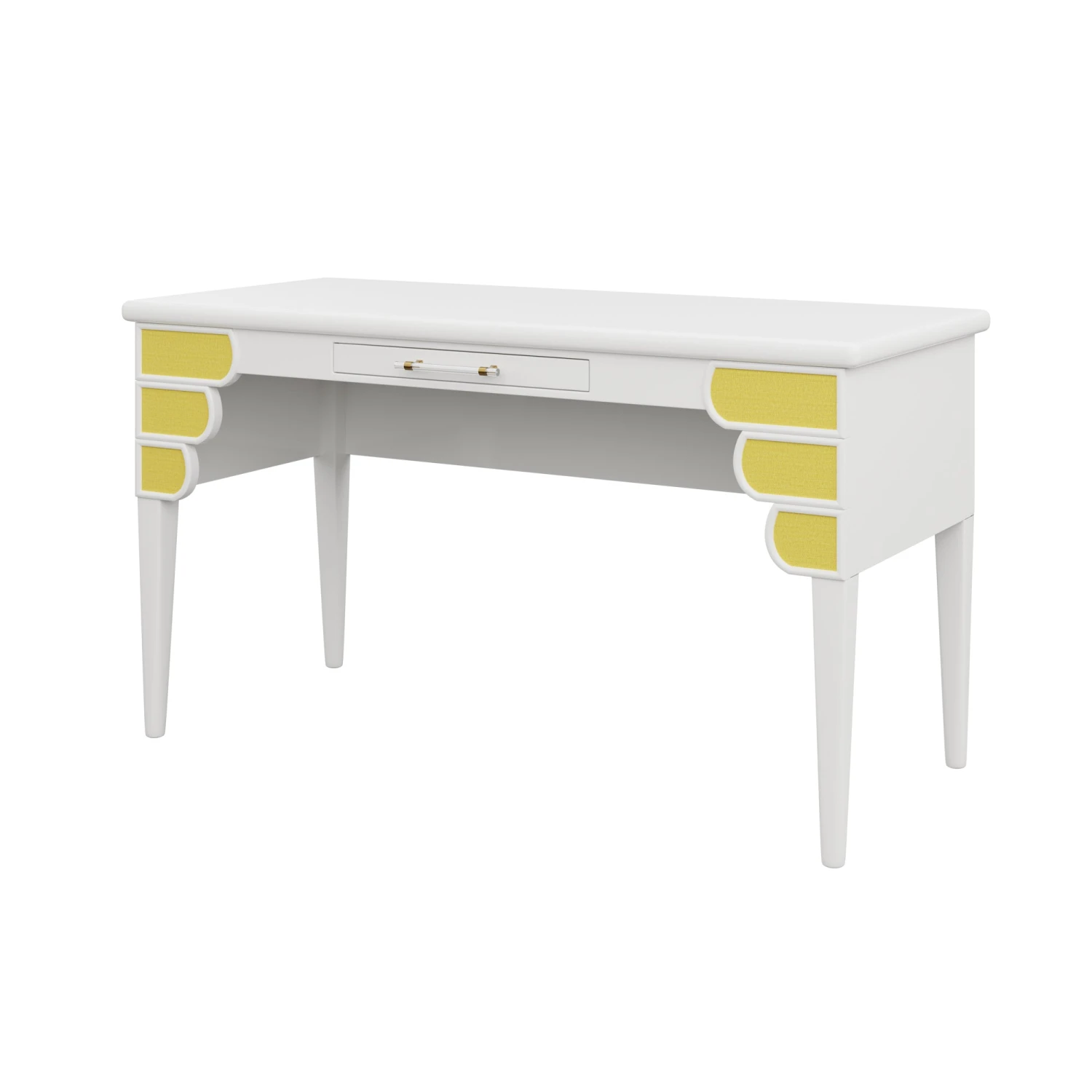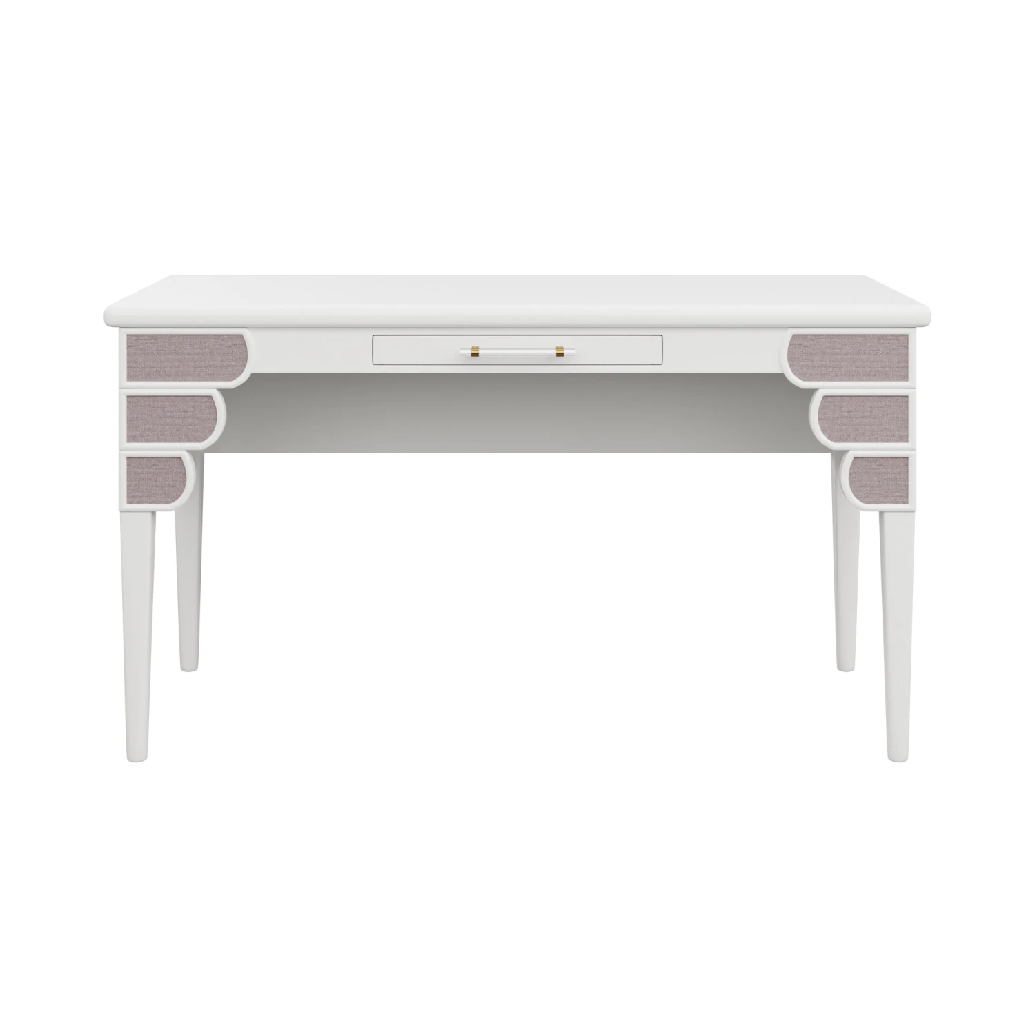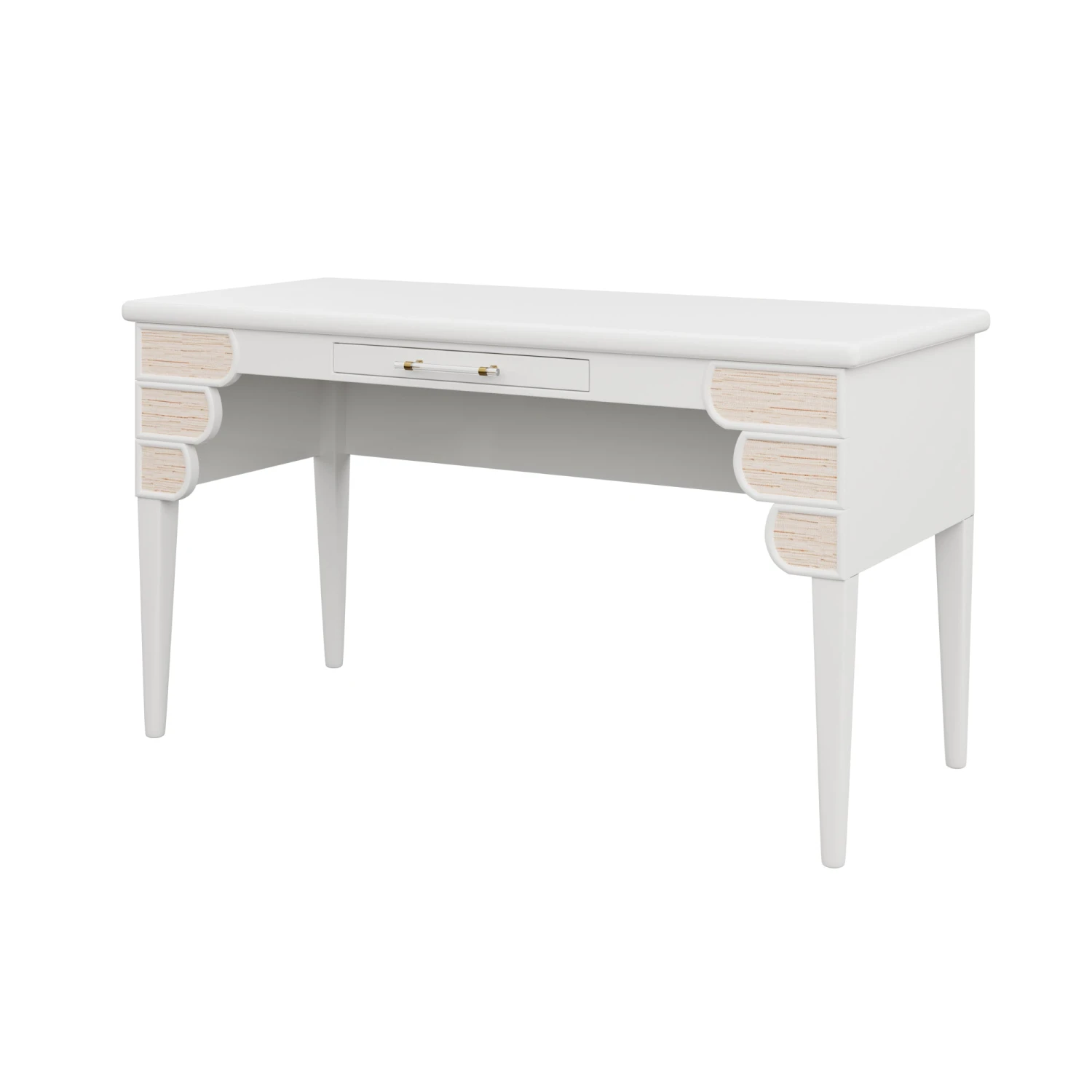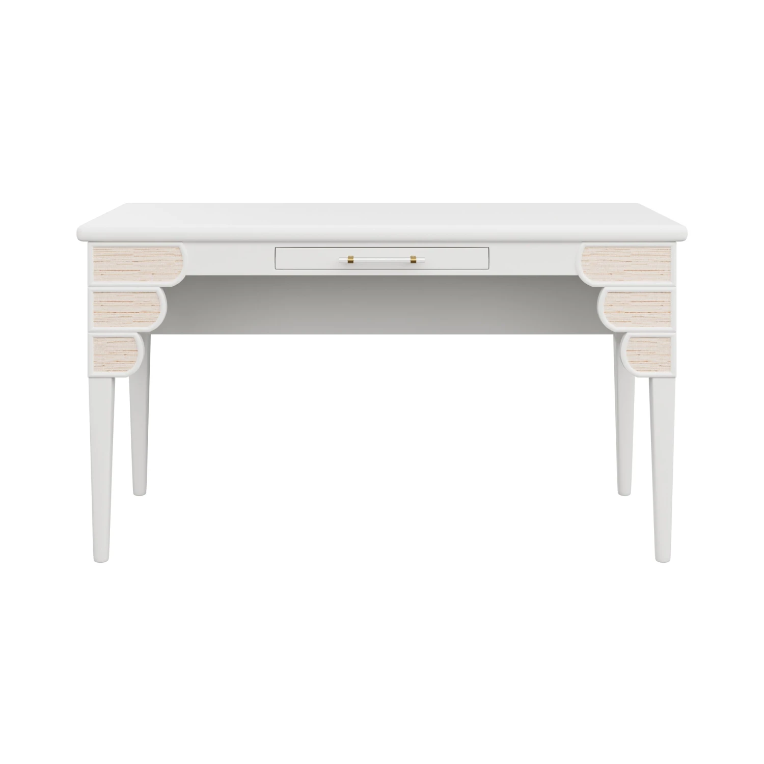 A nod to art deco with a fresh feel. Our Clementine desk features grasscloth detailing and a single drawer with acrylic and brass hardware.Â