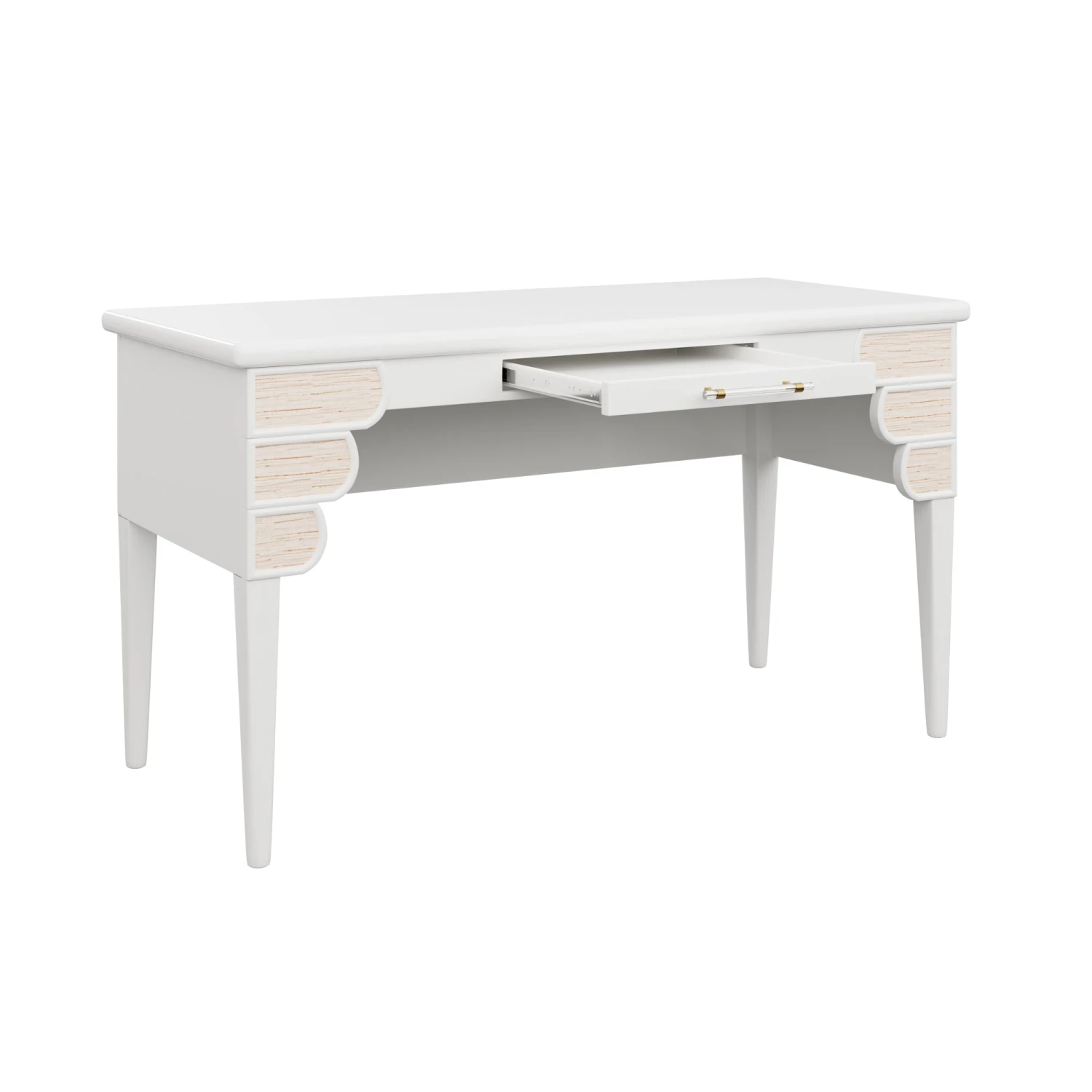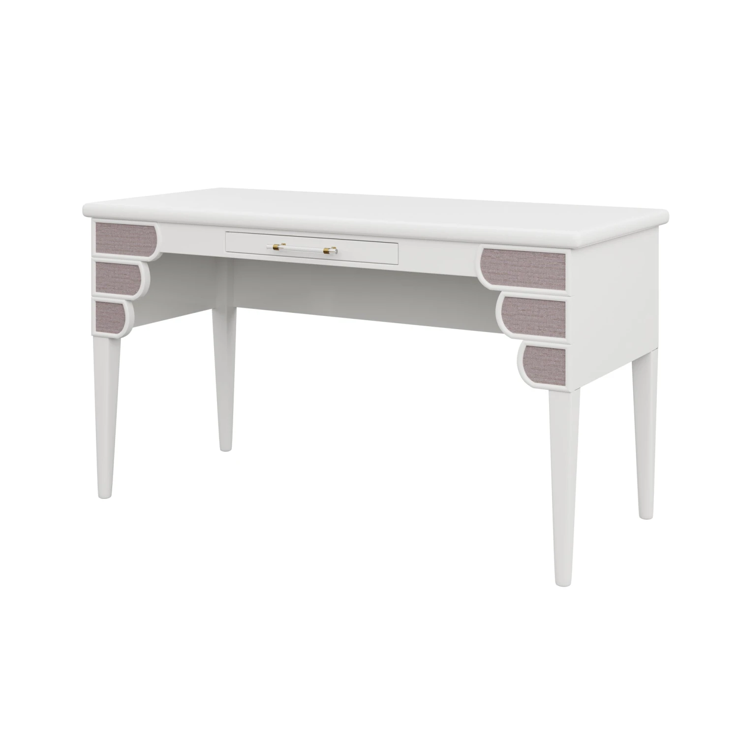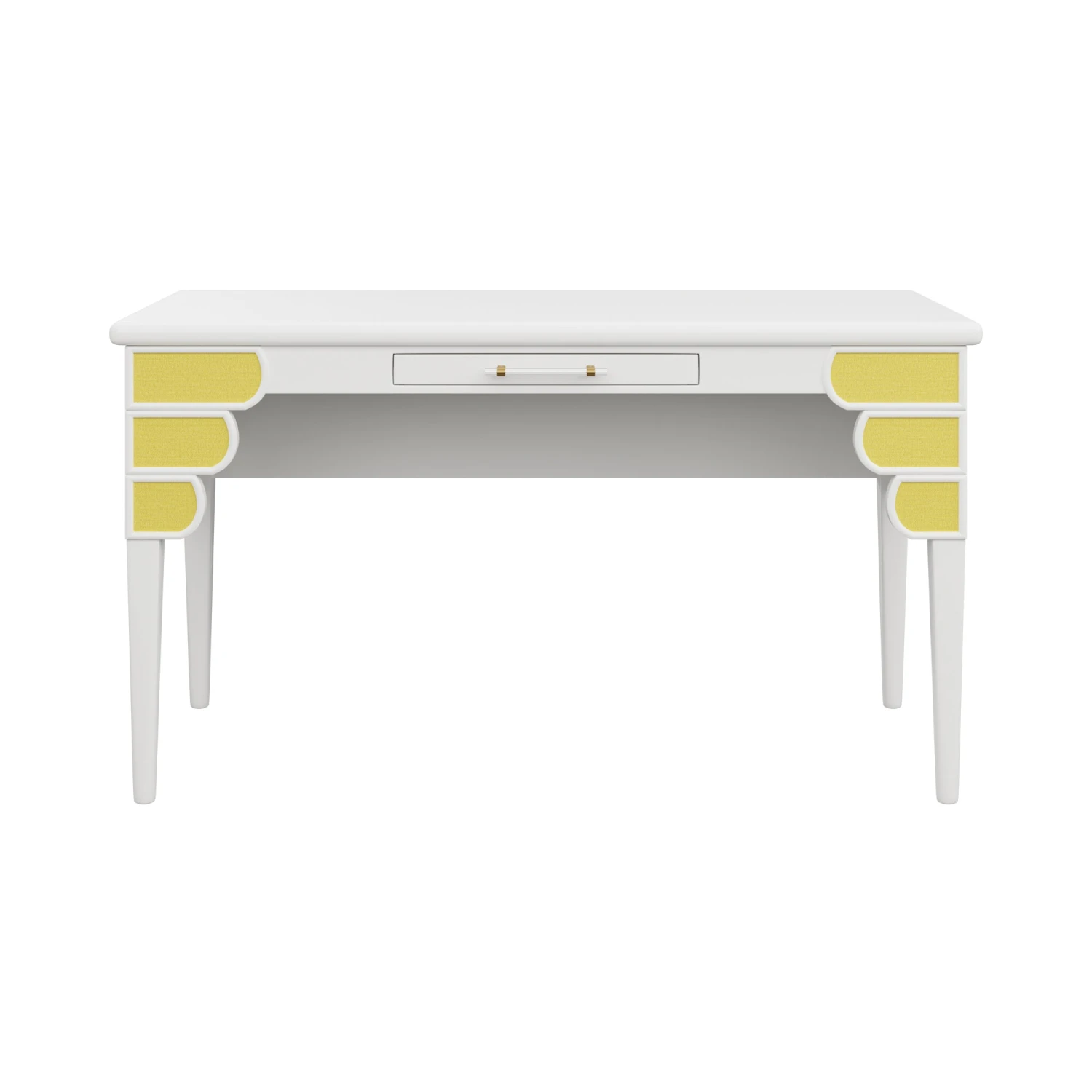 A nod to art deco with a fresh feel. Our Clementine desk features grasscloth detailing and a single drawer with acrylic and brass hardware.Â
