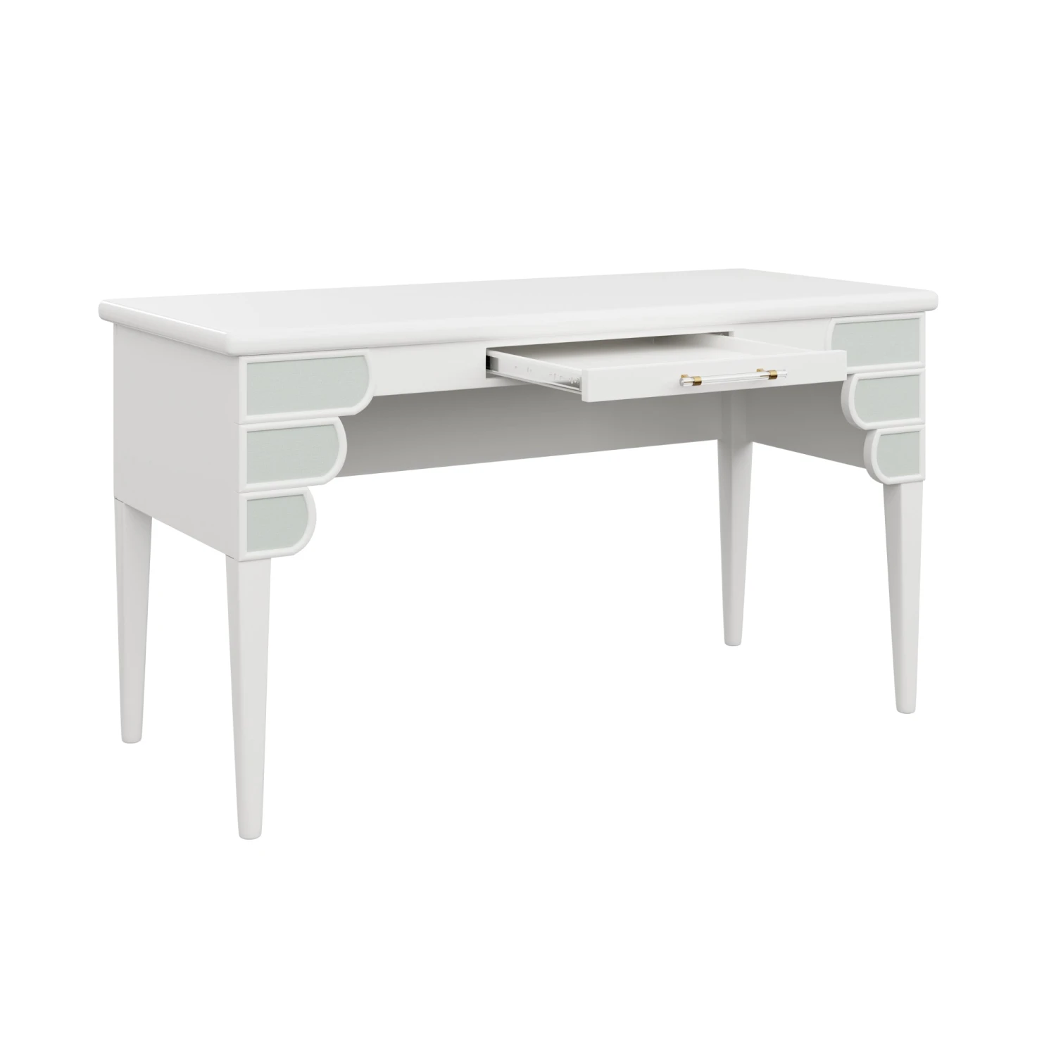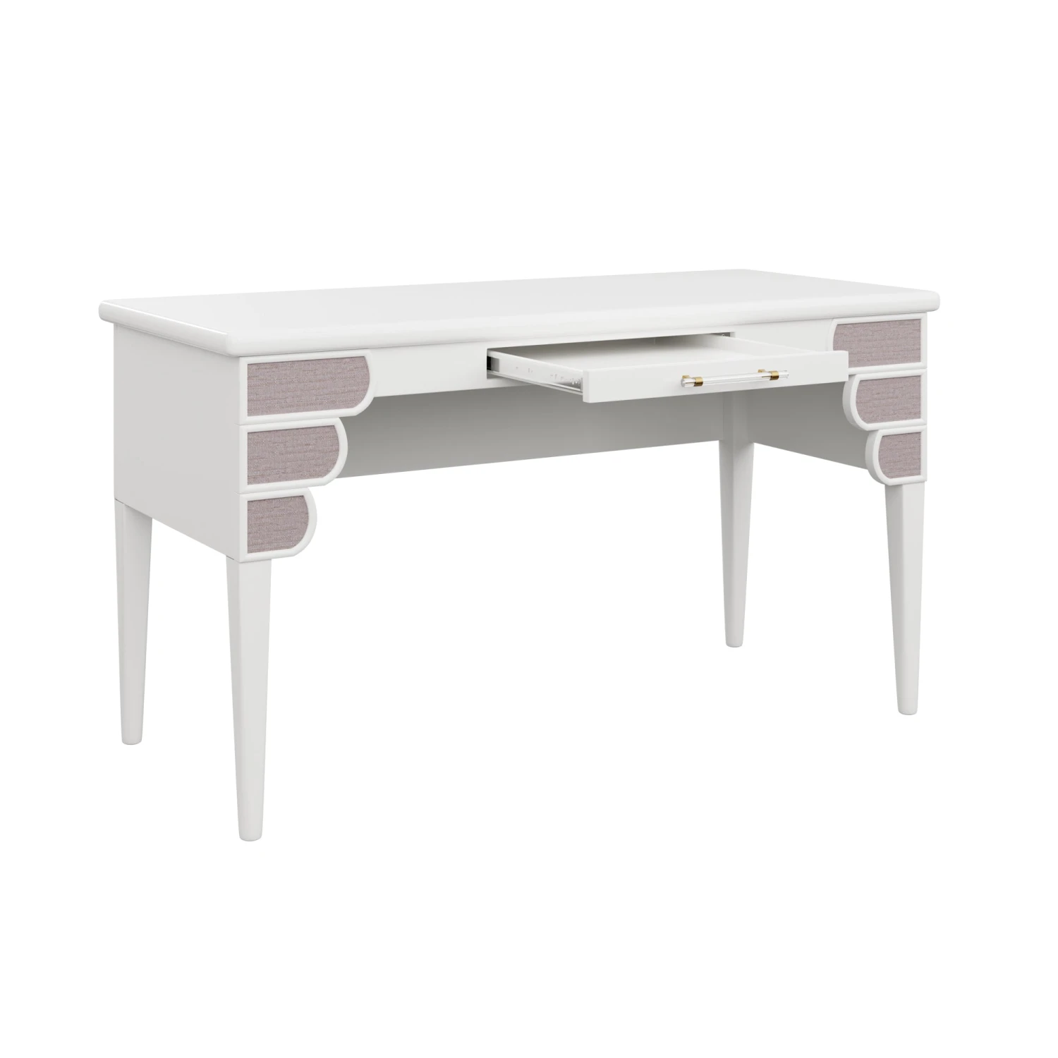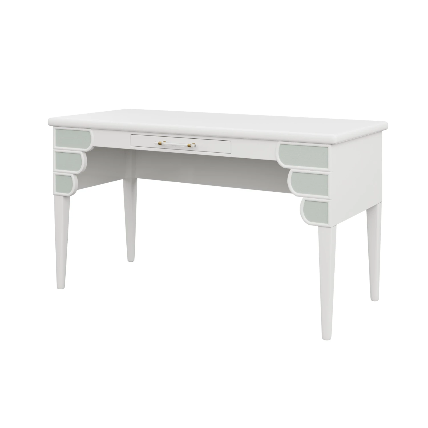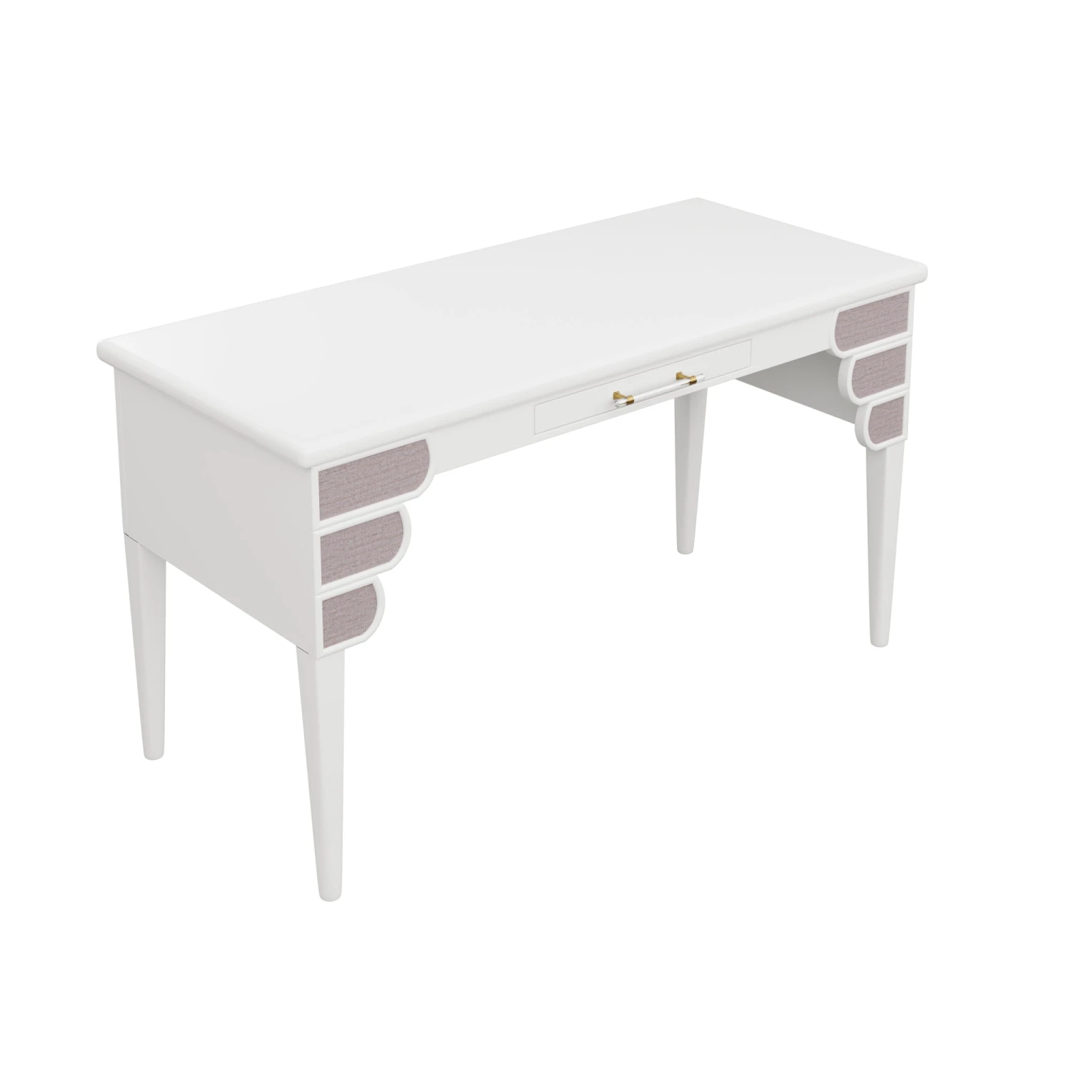 A nod to art deco with a fresh feel. Our Clementine desk features grasscloth detailing and a single drawer with acrylic and brass hardware.Â