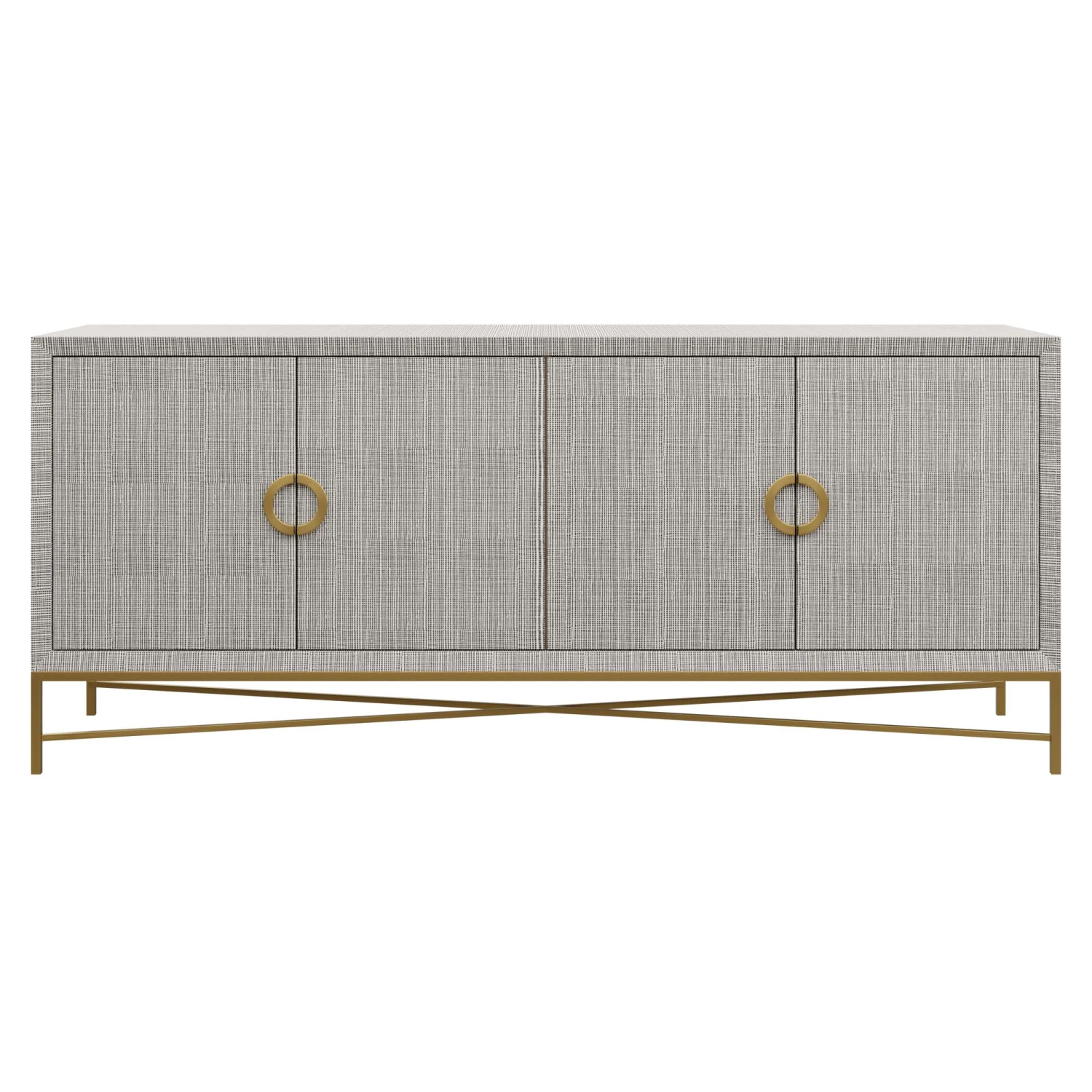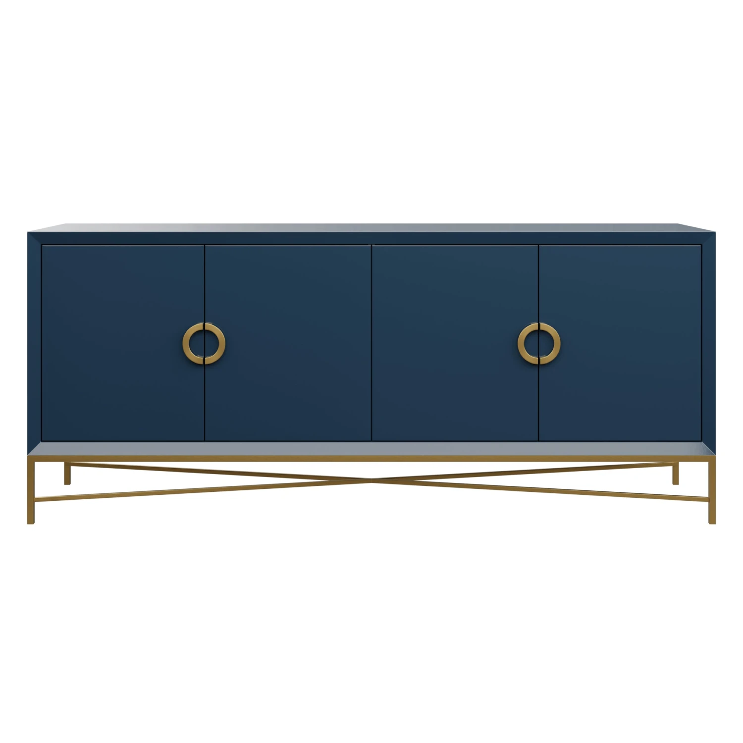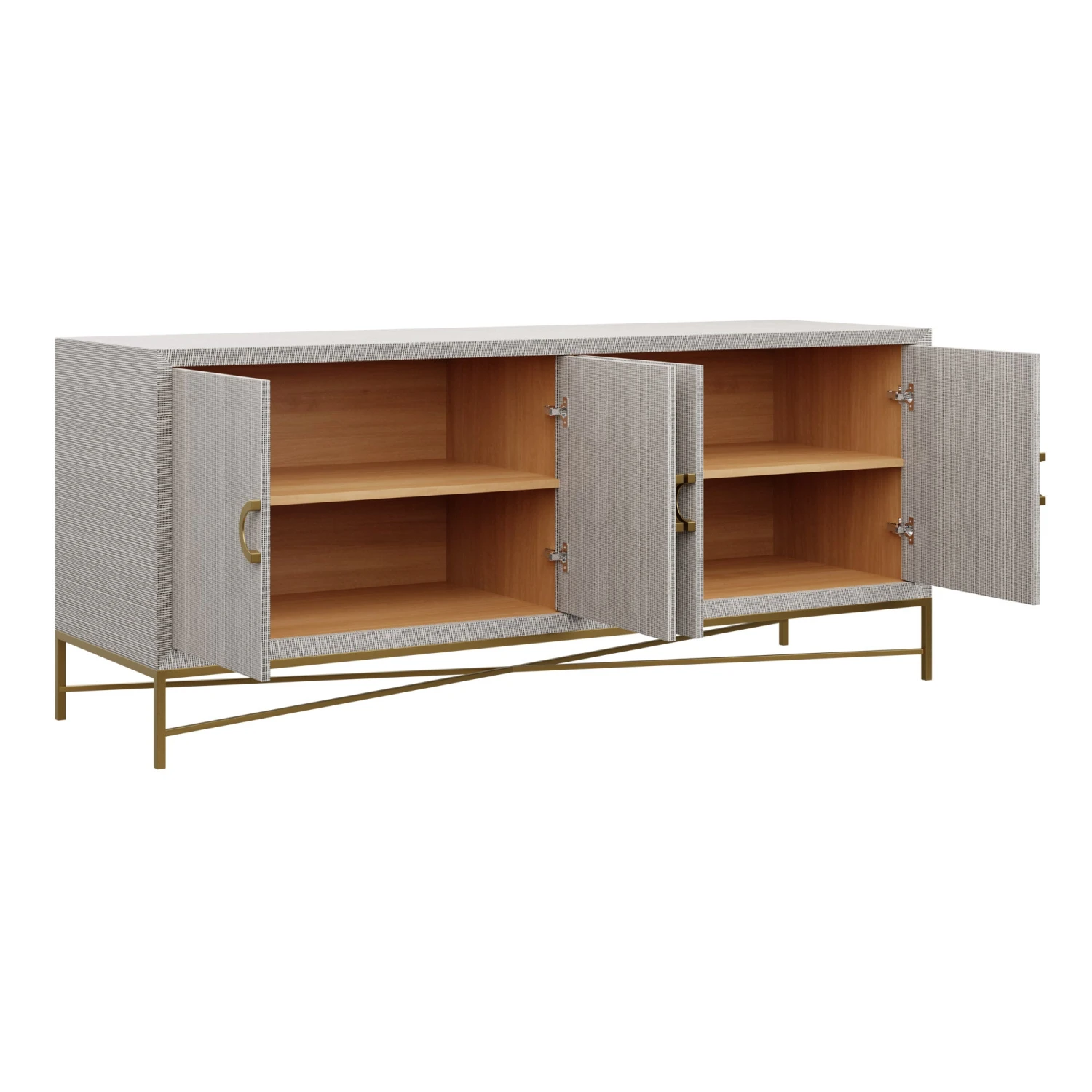 Our Monarch Credenza features a stylish X base and simple doors to allow hardware to shine. Two cabinets with an adjustable shelf in each are the perfect place to store away your odds and ends.