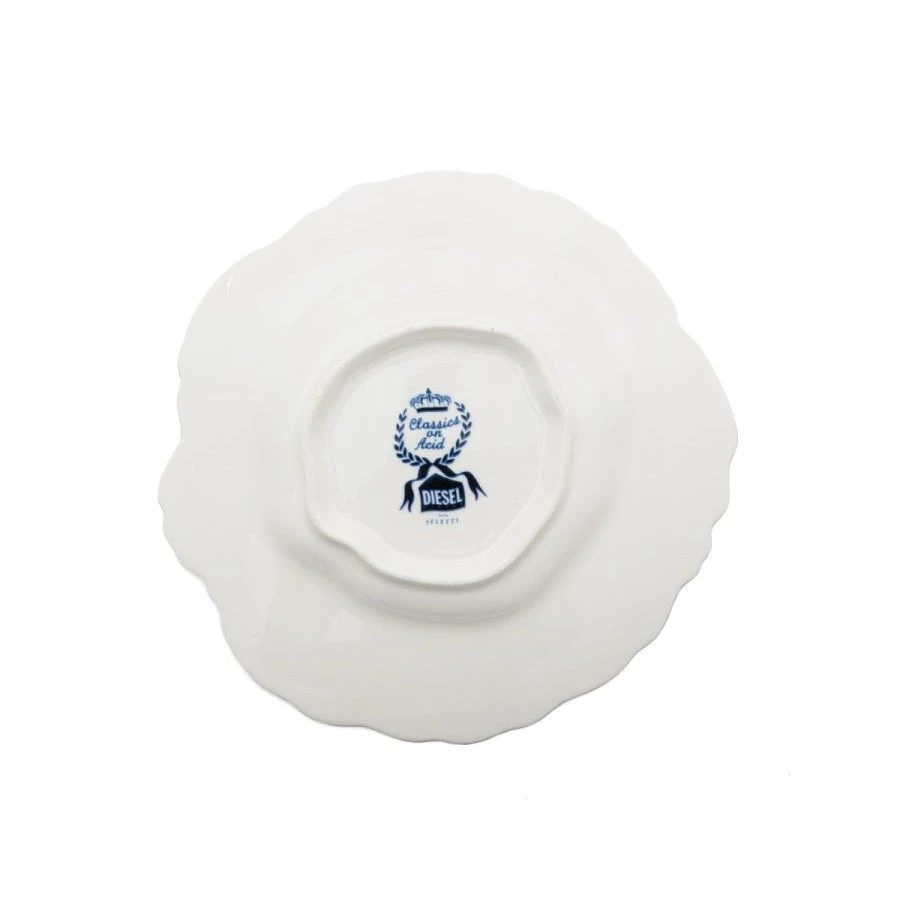 Classic Dutch ceramic with a twist – call it classics on acid. Dessert plate by Seletti featuring a warped traditional ceramic motif in blue.