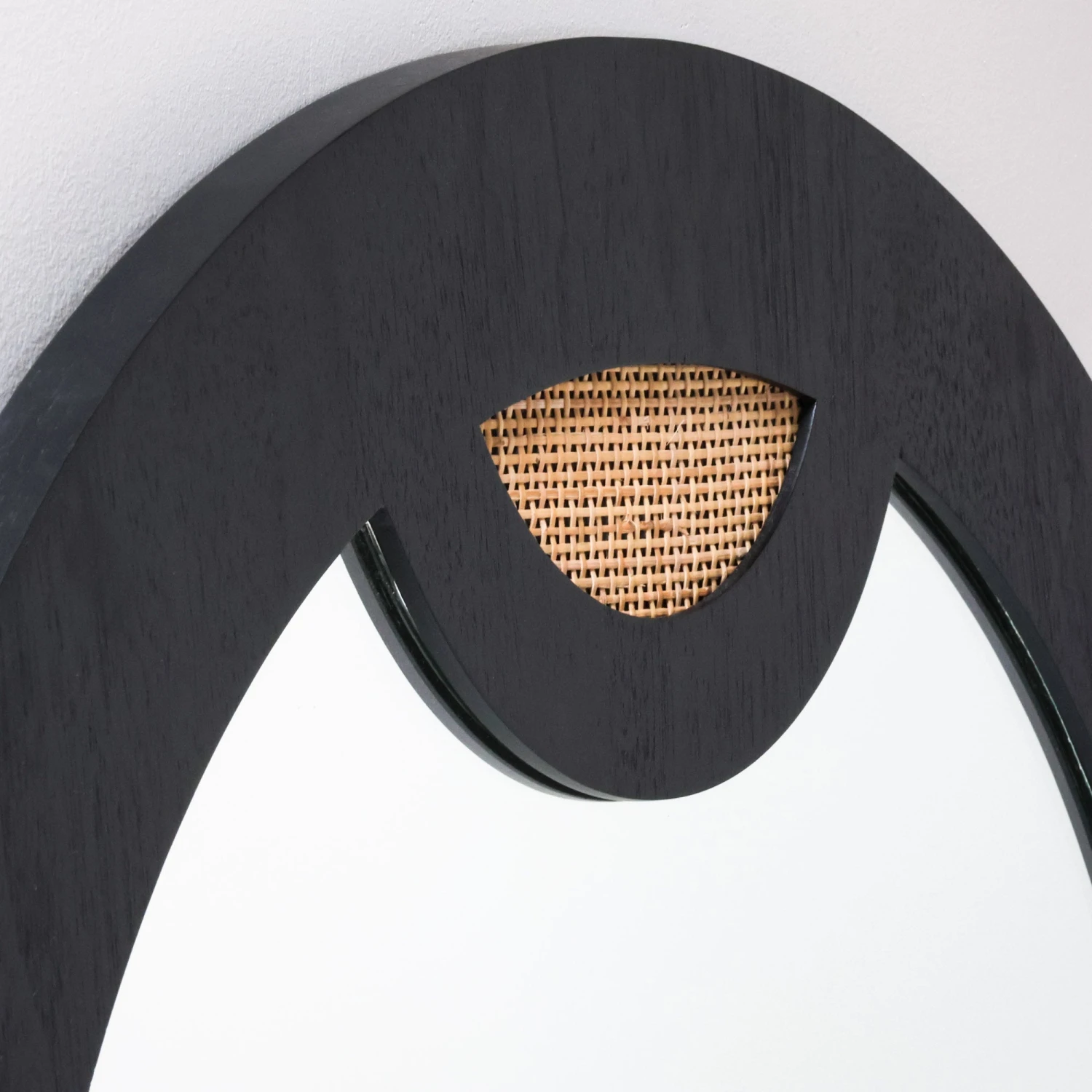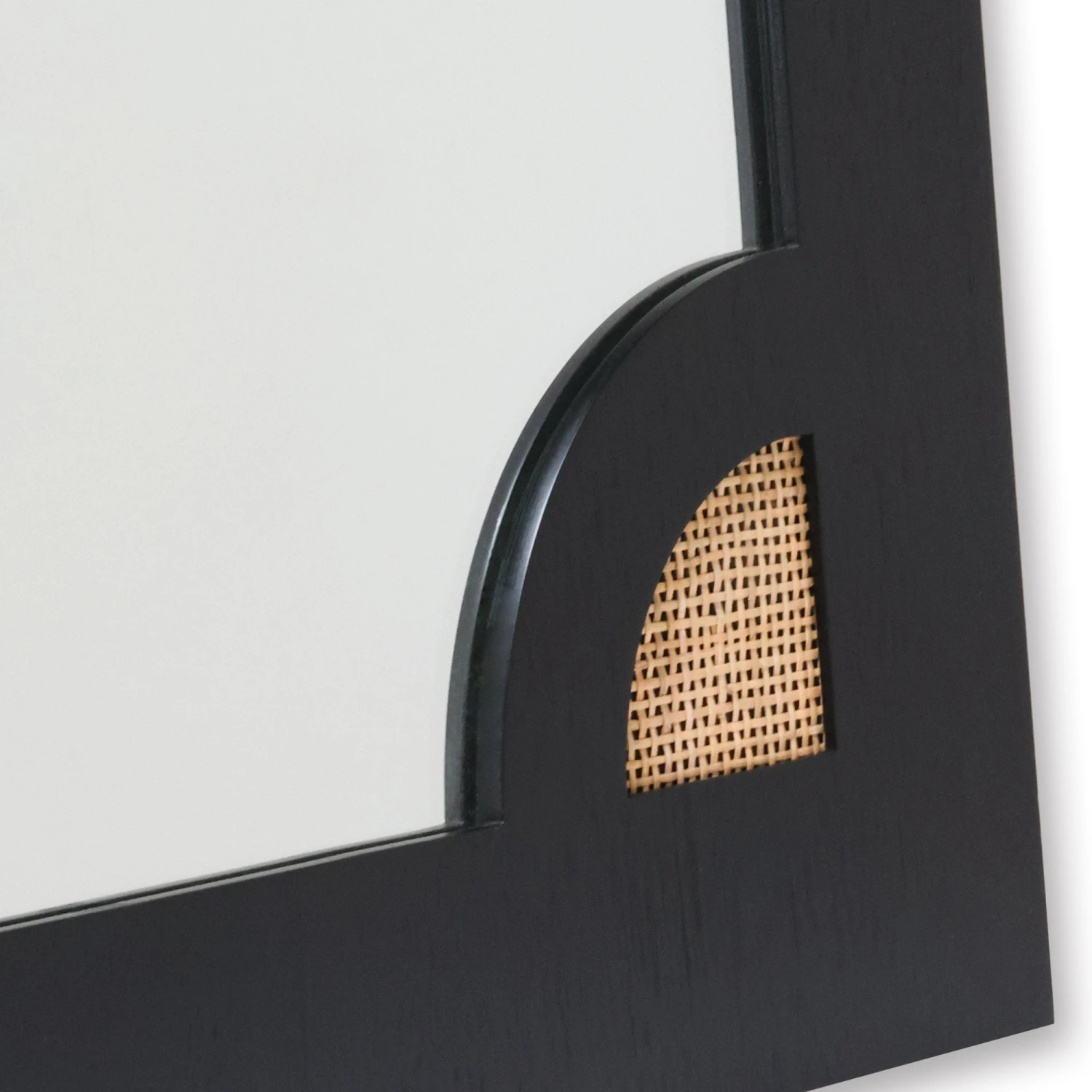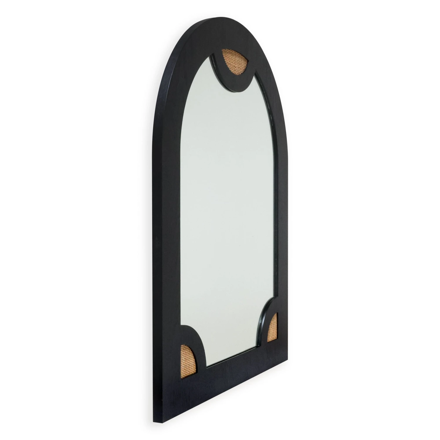 Our Demi Mirror features matte black lacquered wood that brings on the drama and frames inset rattan detailing for an organic touch. A timeless arched shape means this one will blend seamlessly with its surroundings, while still making a statement.Â
