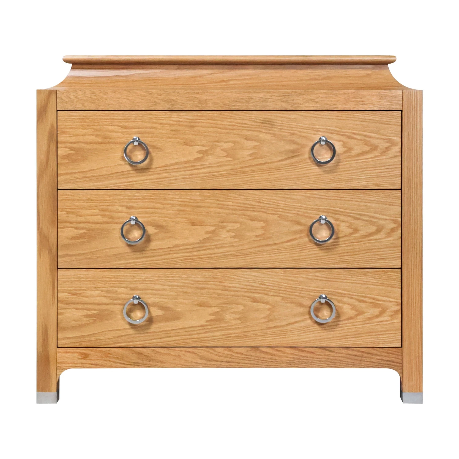 Sly and masterful, our Espionage Chest steals the show with its unique design. Now available in a sophisticated oak veneer finish, chrome pulls and sabots accentuate this piece for a refined look.