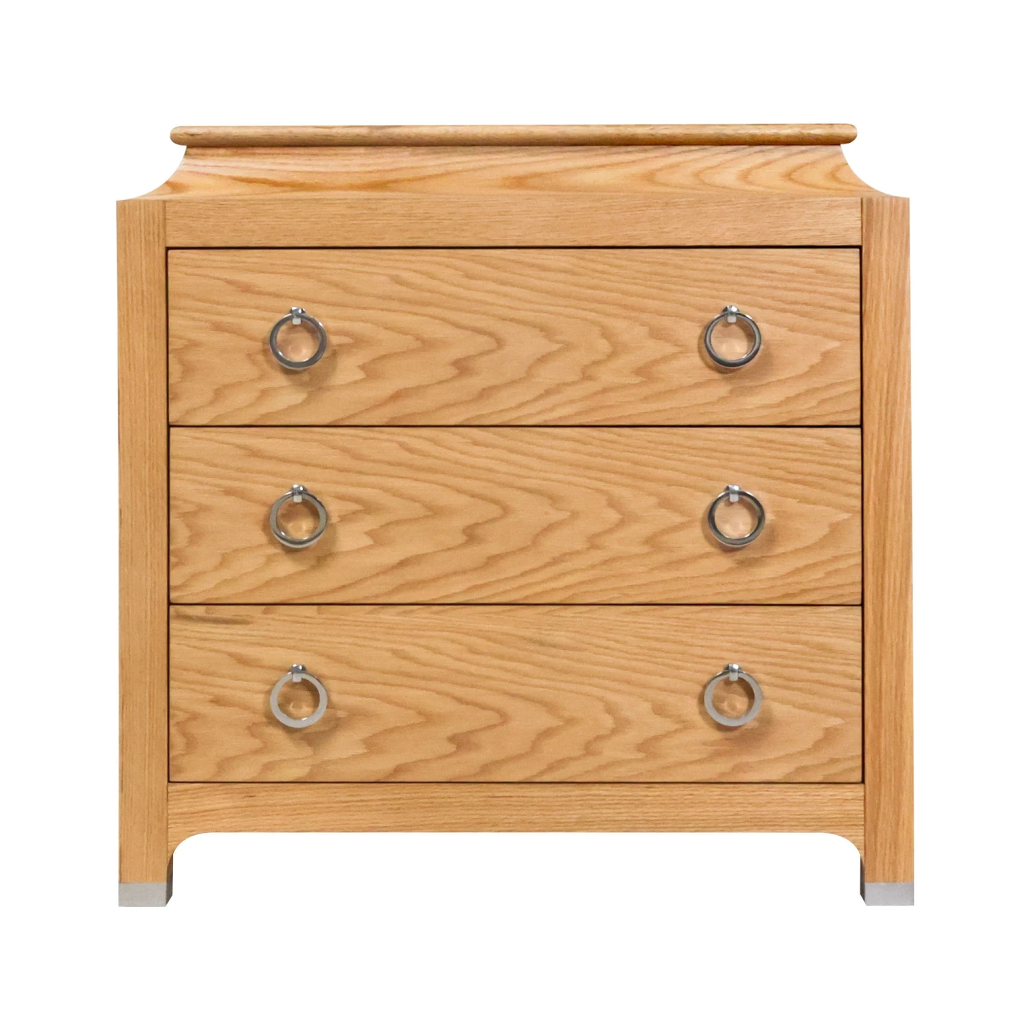 Sly and masterful, our Espionage Chest steals the show with its unique design. Now available in a sophisticated oak veneer finish, chrome pulls and sabots accentuate this piece for a refined look.