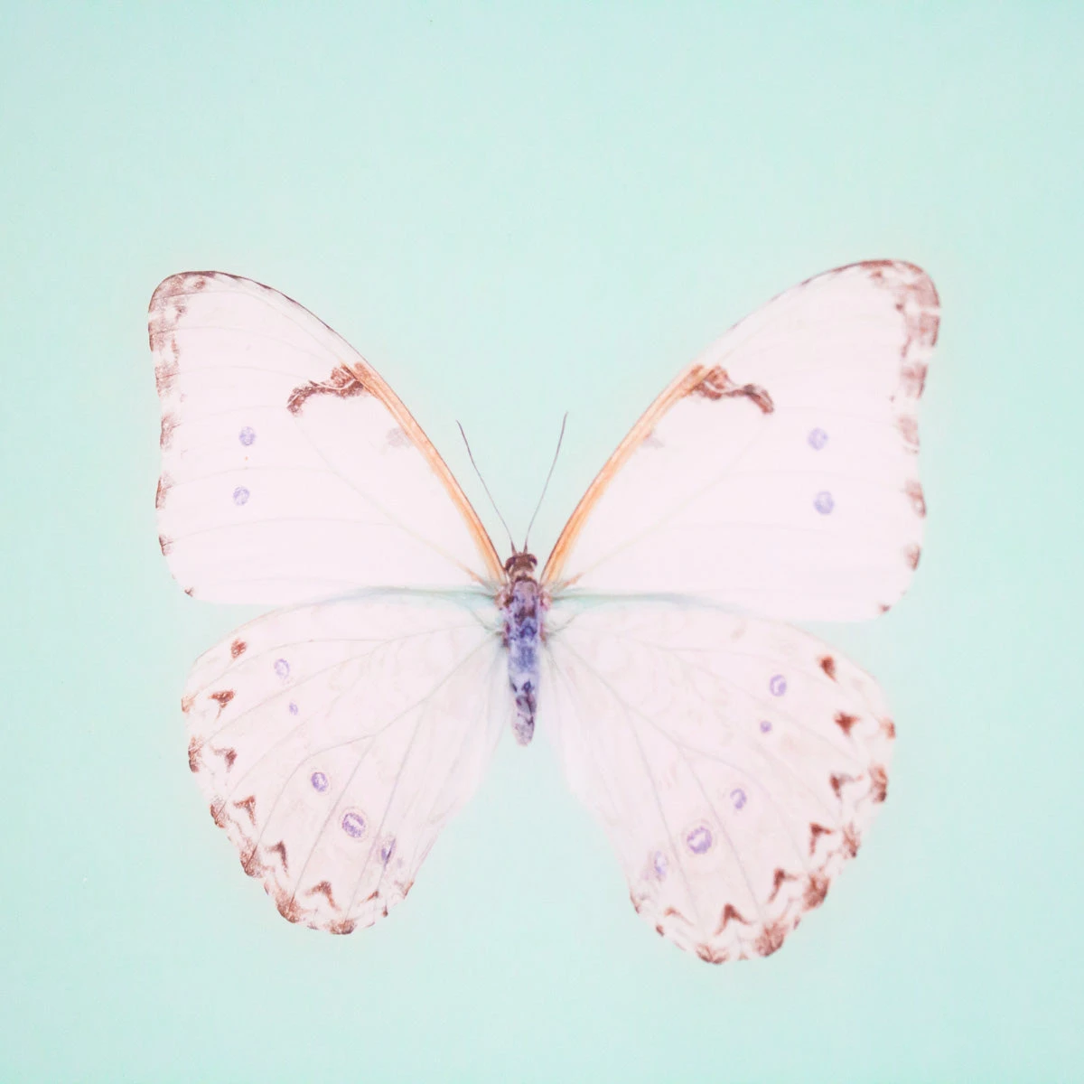 Scout exclusive pastel butterfly artwork. UV printed on acrylic film with a black and gold frame.