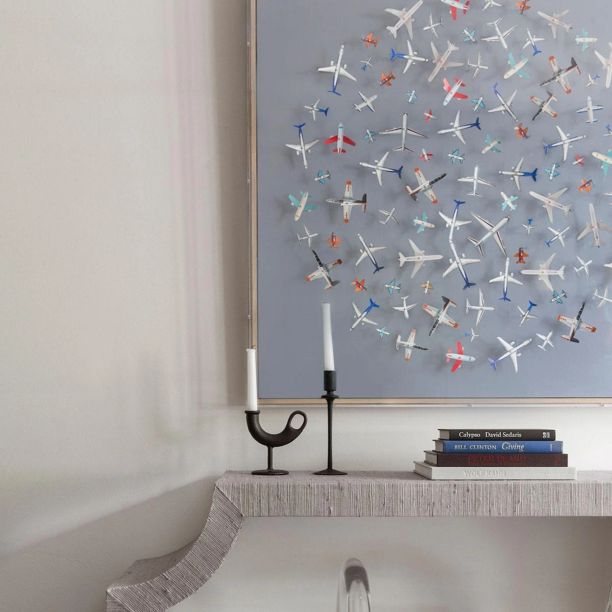 A new take on your 1st grade paper airplane. We are obsessed with the concept and execution of this piece. Perfect for any jet setter or aviation nerd.