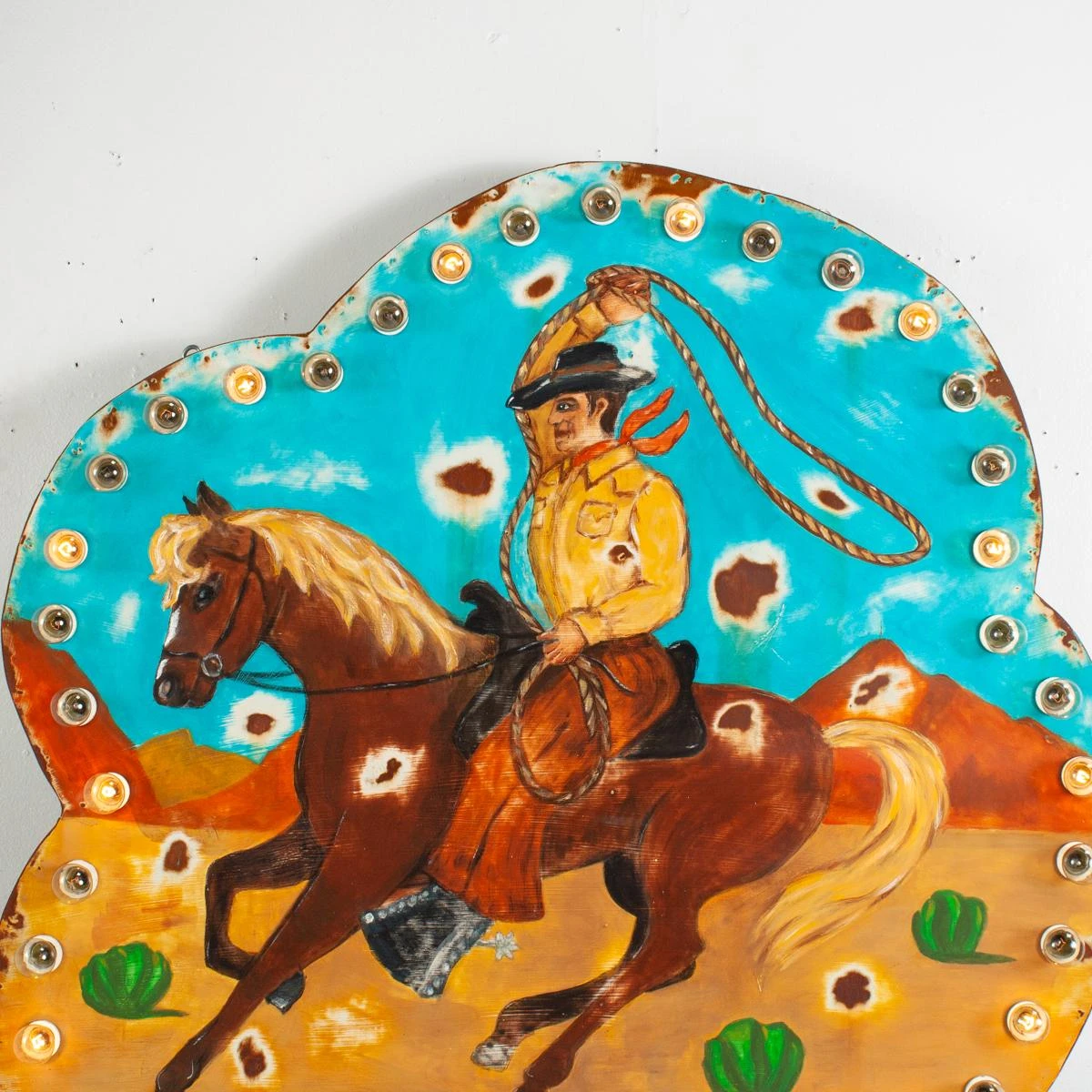 Lariat Hotel light-up sign, made to look vintage by artist Garland Murphree. Two light settings with one flashing.