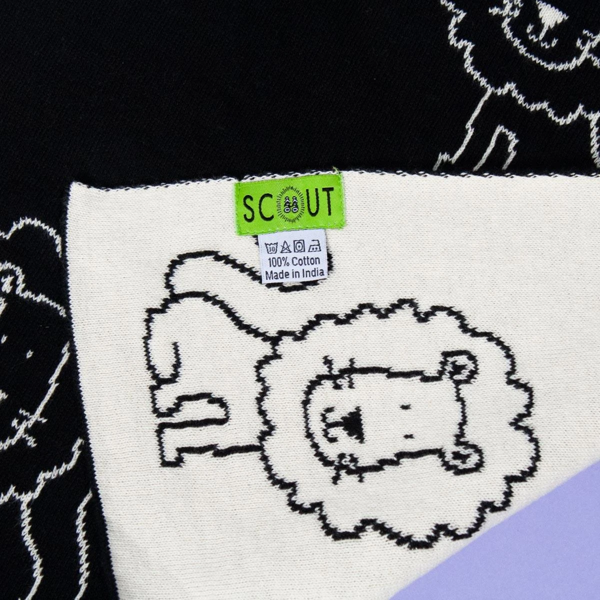 SCOUT LABEL. 100% cotton knit throw blanket.
