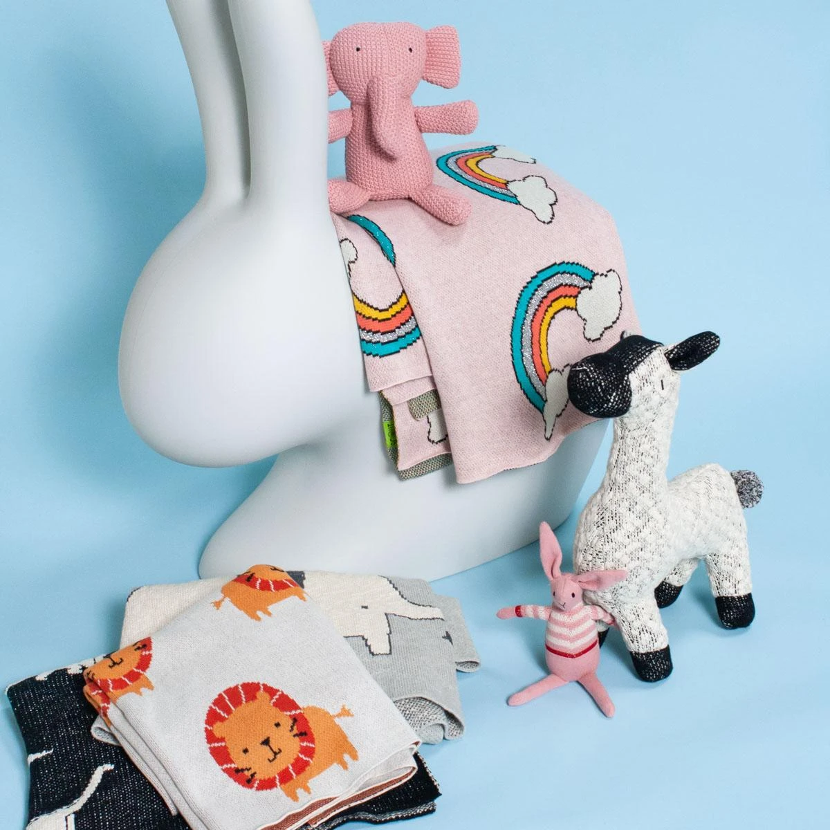 Our Llama Friend stuffed animal is hand-knit from cotton and oh so soft.