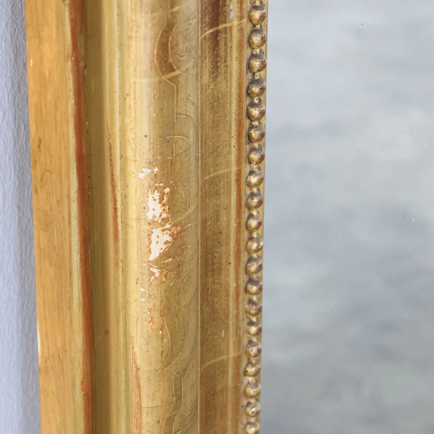 Classic and timeless vintage mirror in the style of Louis Philippe. Features a curved top and gilted gold detailing.