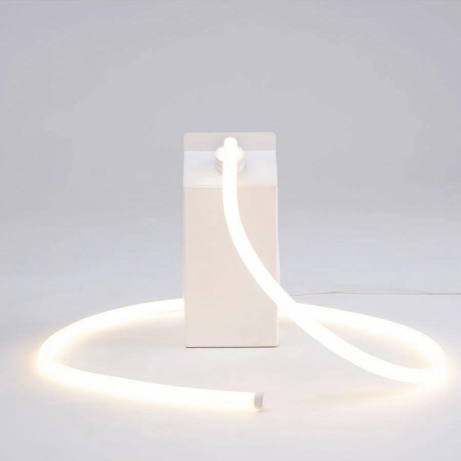The Milk Glow LED Lamp by Seletti is a creative endeavor to reimagine an everyday object as interior design.Â