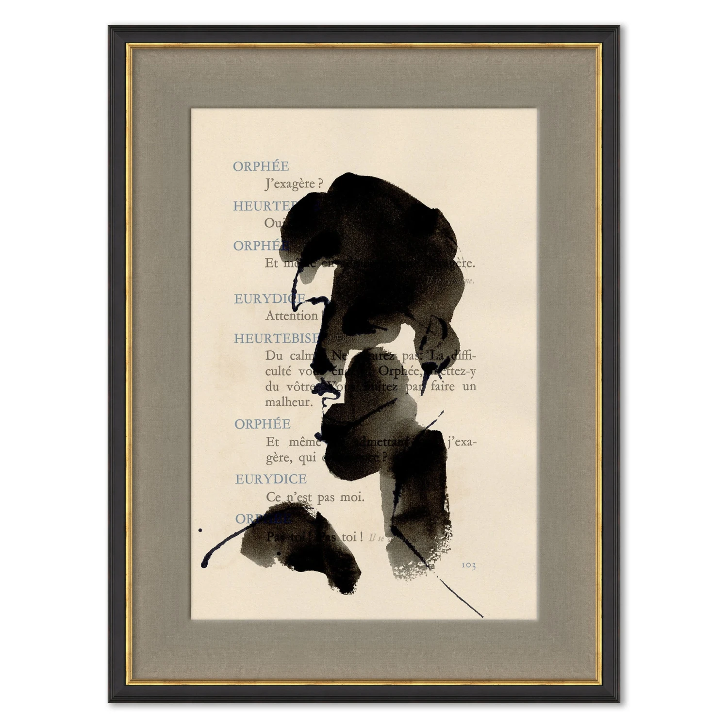 This piece features a portrait by Yuki Osada painted over a page from Jean Cocteau’s play Orphée, known in English as Orpheus.Â