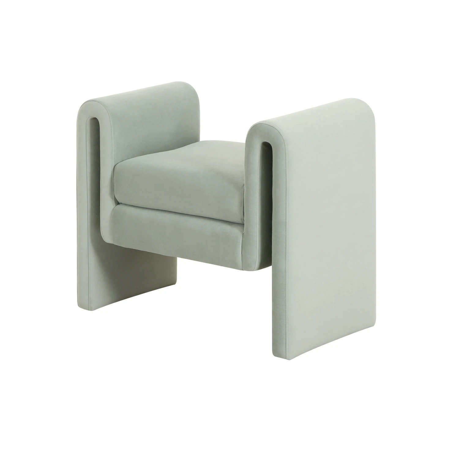 Now available as an ottoman in light blue fabric, our Promenade design takes curves to the next level.