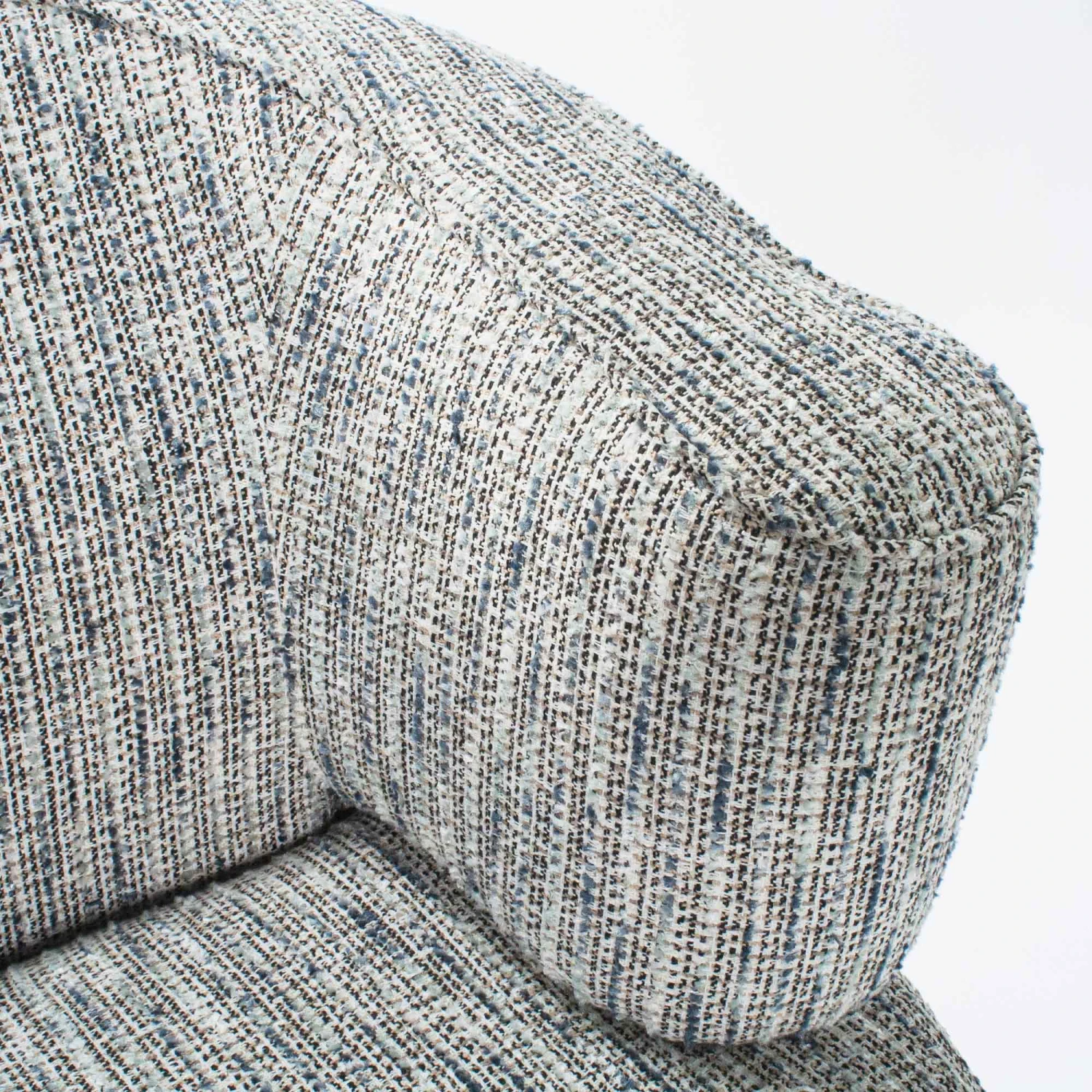 A combination of blues and neutrals, the tweed on our Rainmaker is thickly textured for style AND durability. This fabric blend is soft and comfortable with just the right amount of texture.