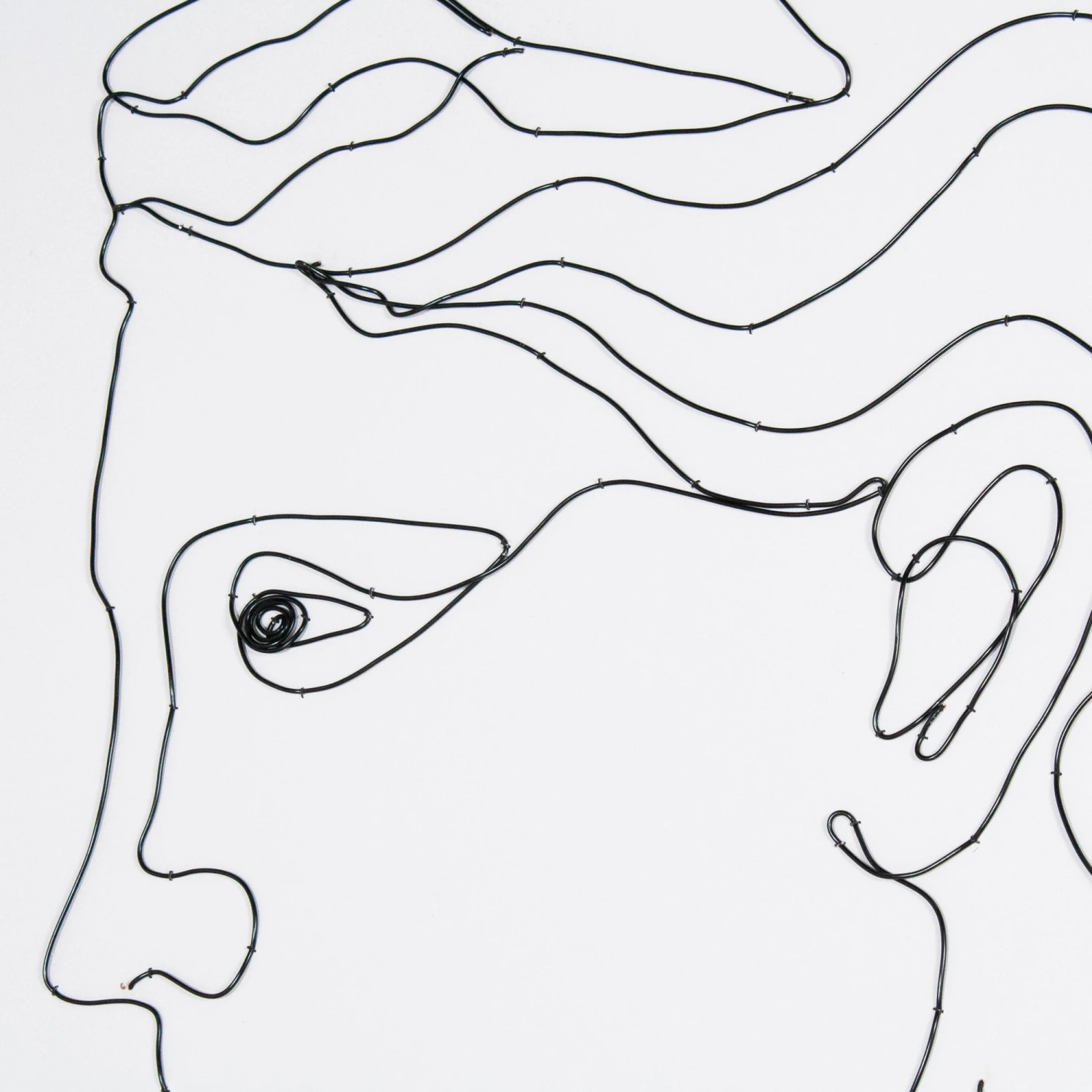 Mixed media wire artwork by Tat Frederick. Roman wire portrait art pinned to drawing paper and framed in black with a white matte.