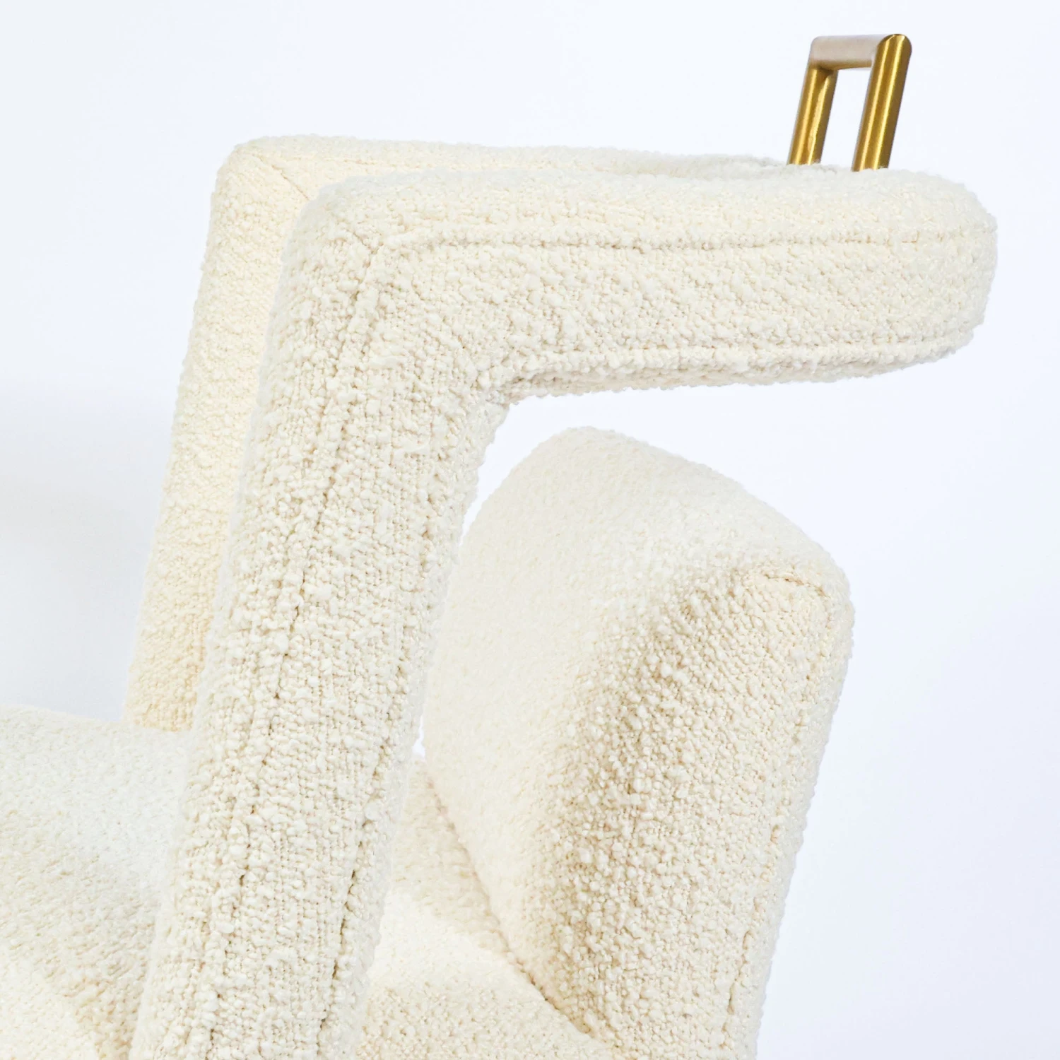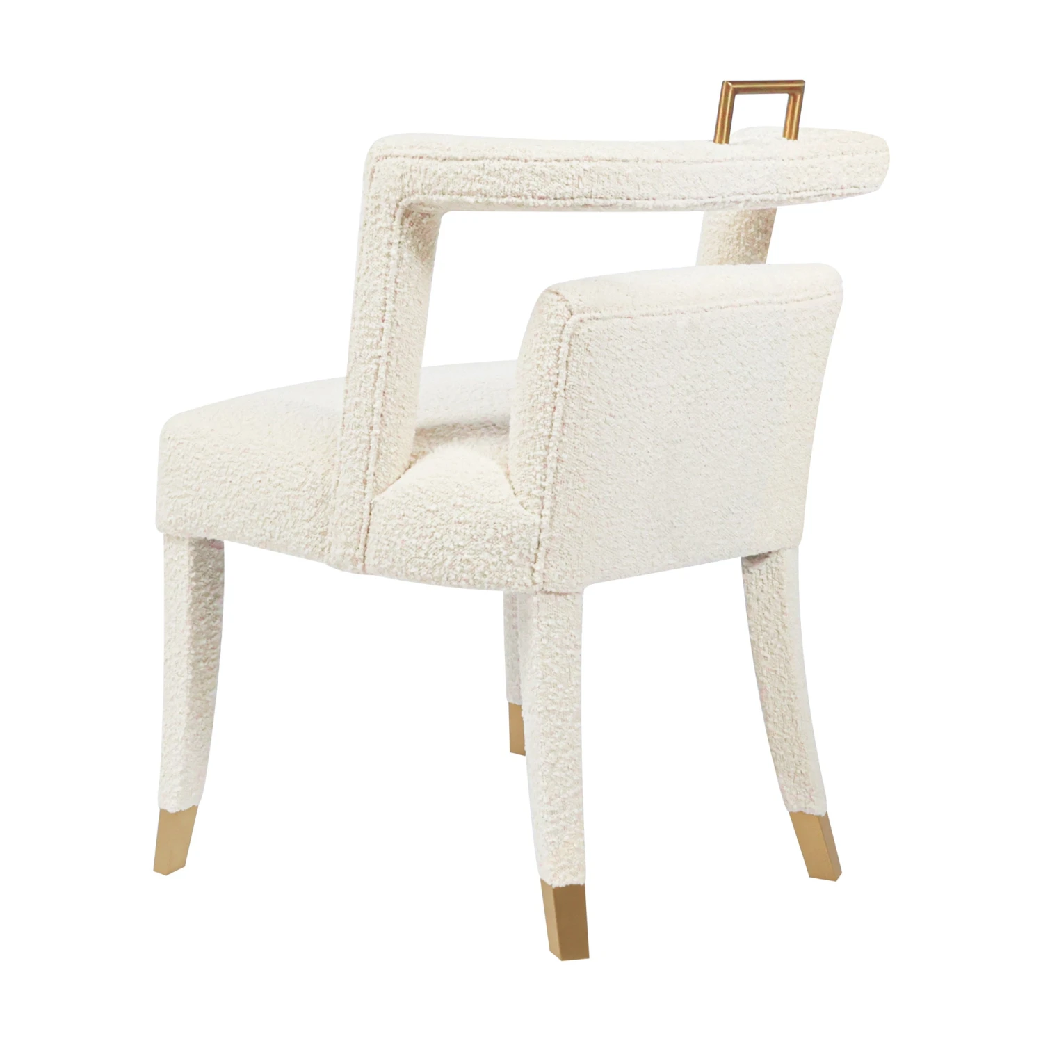 Our Revelry Dining Chair provides all of the modern interest you want with the softness of ivory boucle fabric. We love the brass accents and unique open back design.Â