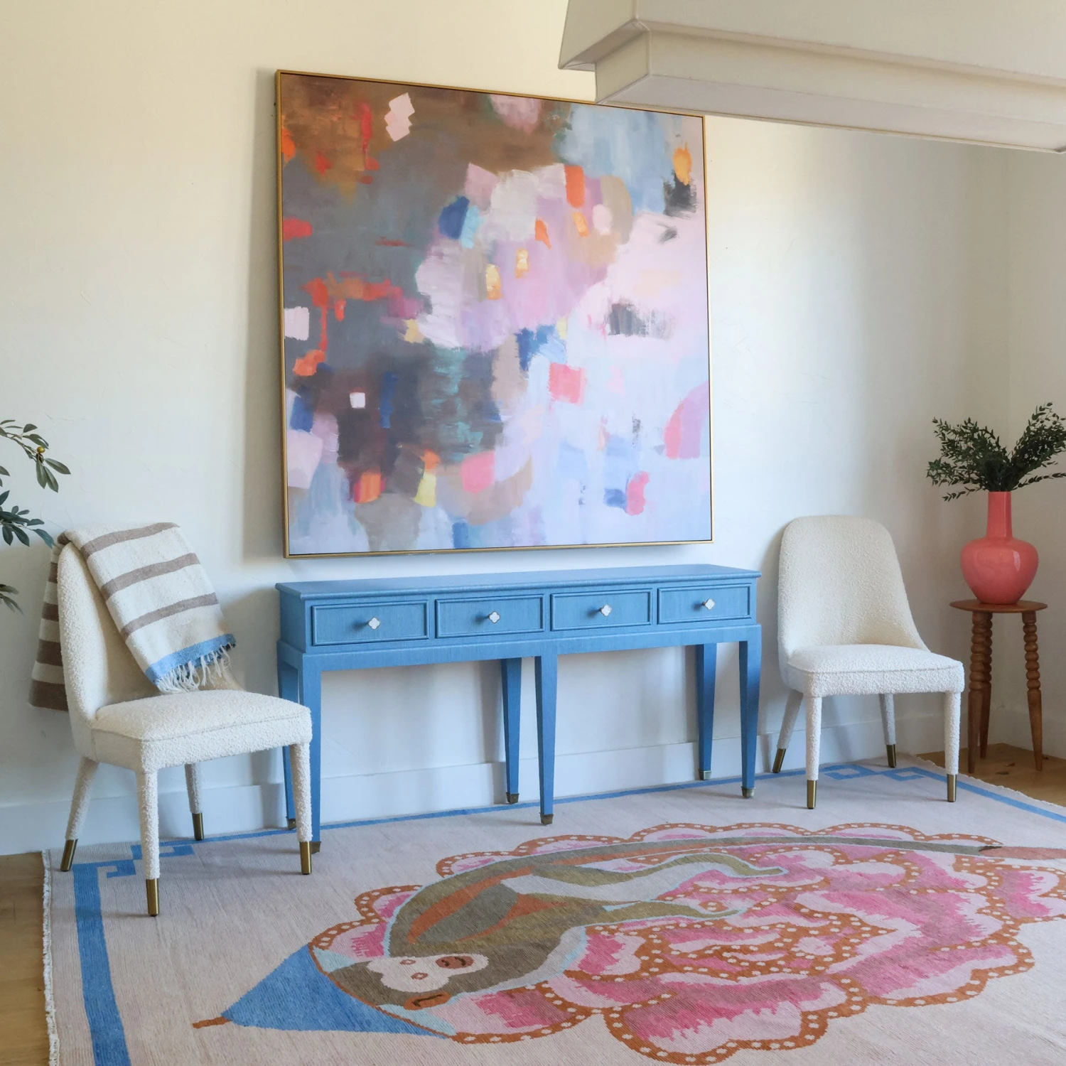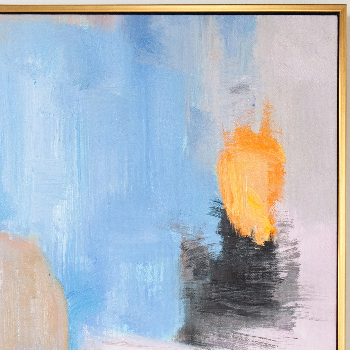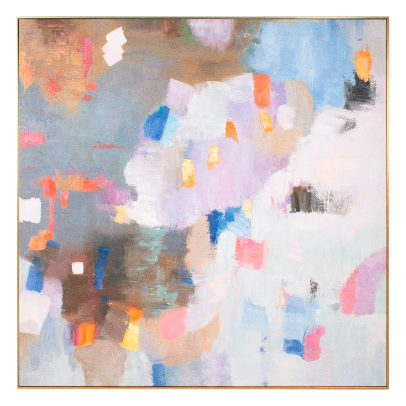Rowdy yet refined, this piece features abstract hues artfully arranged and giclee printed. Framed in thin gold.Â