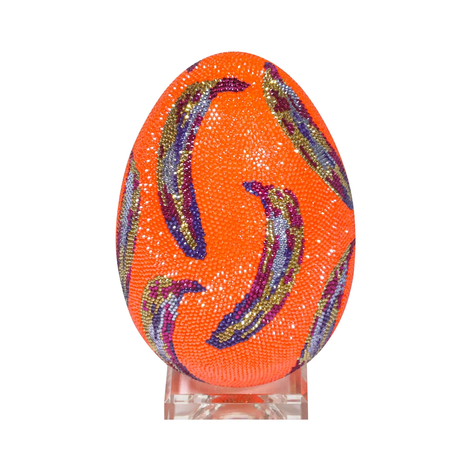 This sculpture is bananas! Hand-painted by artist Loli DiSanto, this paper mache egg is covered in approximately 12,000 Swarovski crystals. A unique accent that’s sure to start some conversations.