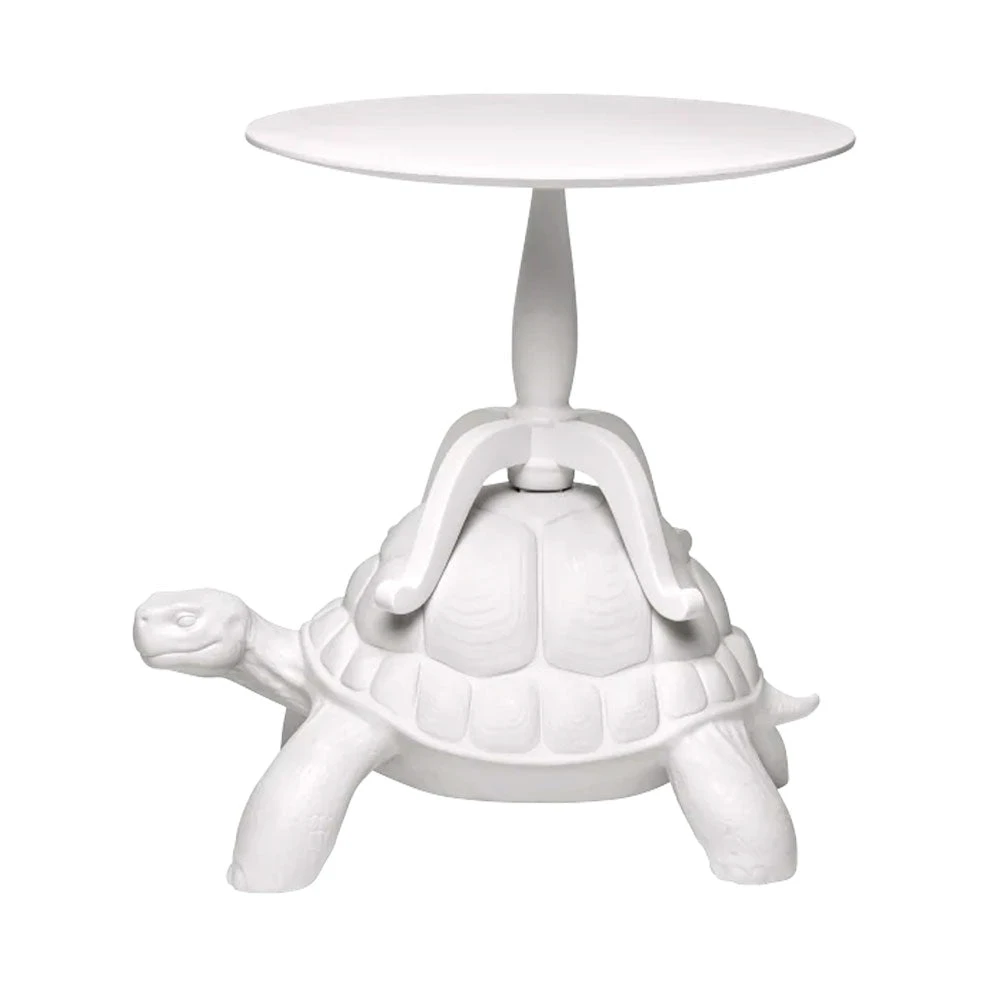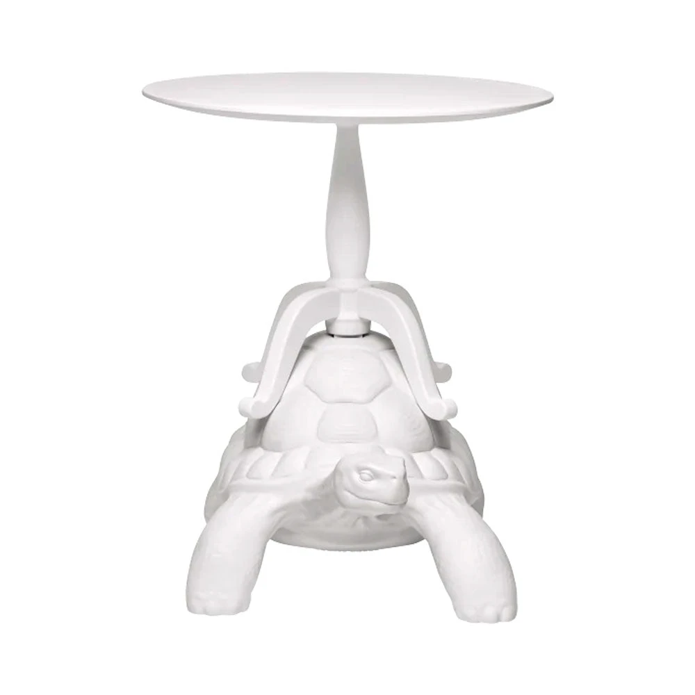 After the success of “Giraffe in love” Qeeboo is enriched with another magical character bearing the signature of Marcantonio: Turtle Carry. Now featuring a table to hold all of your goodies!