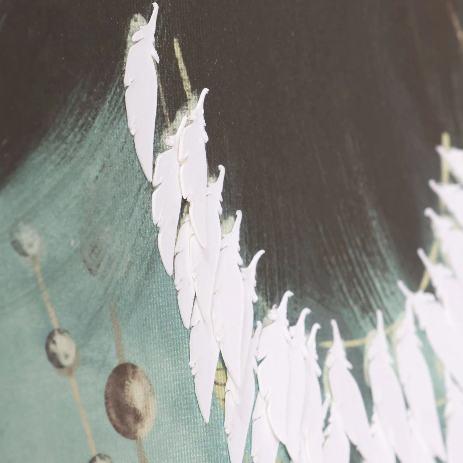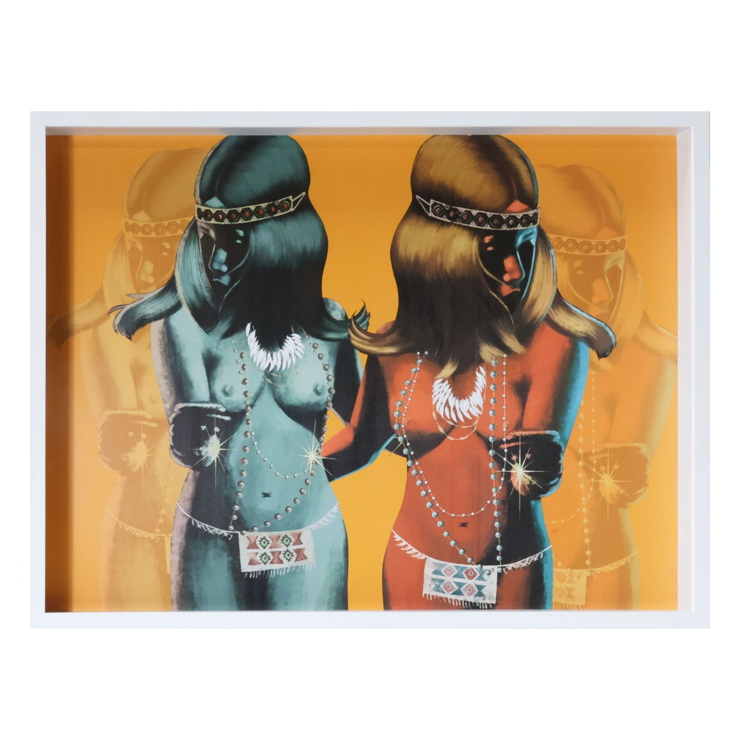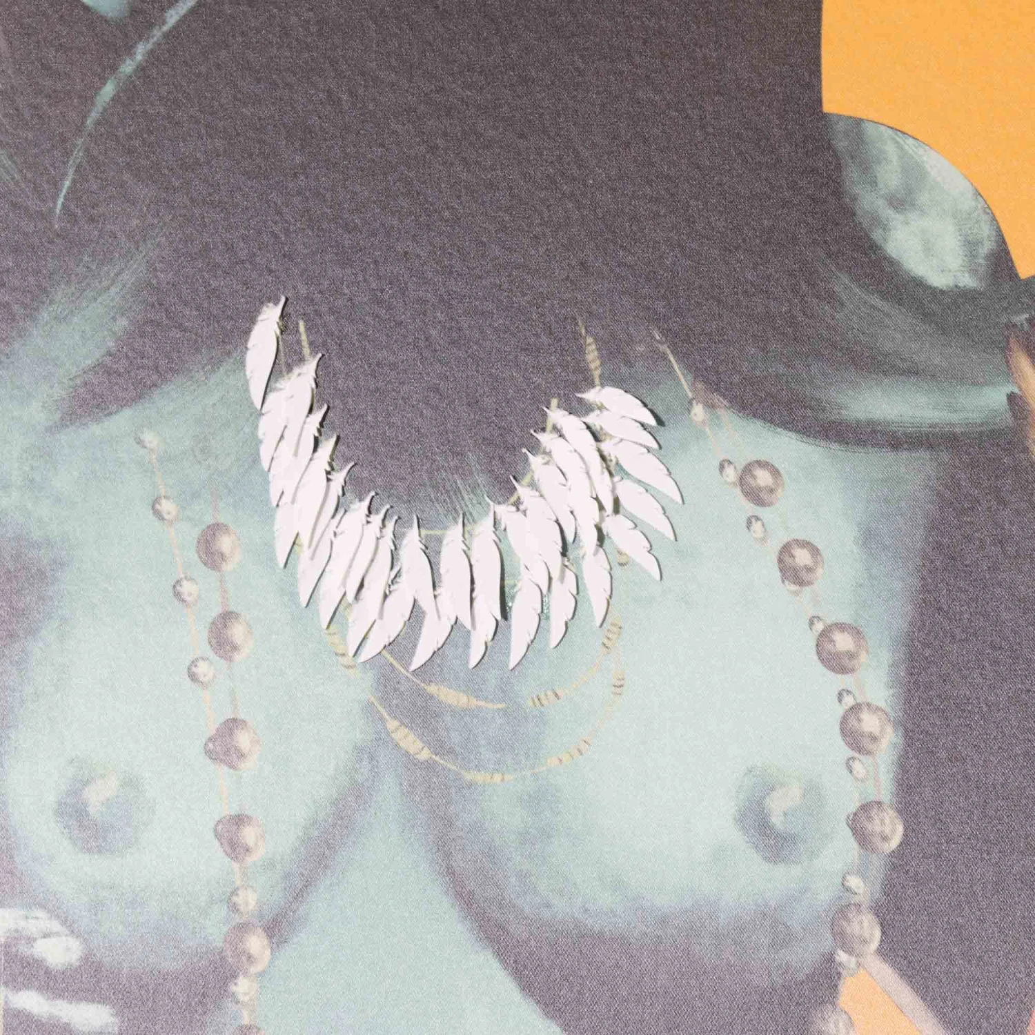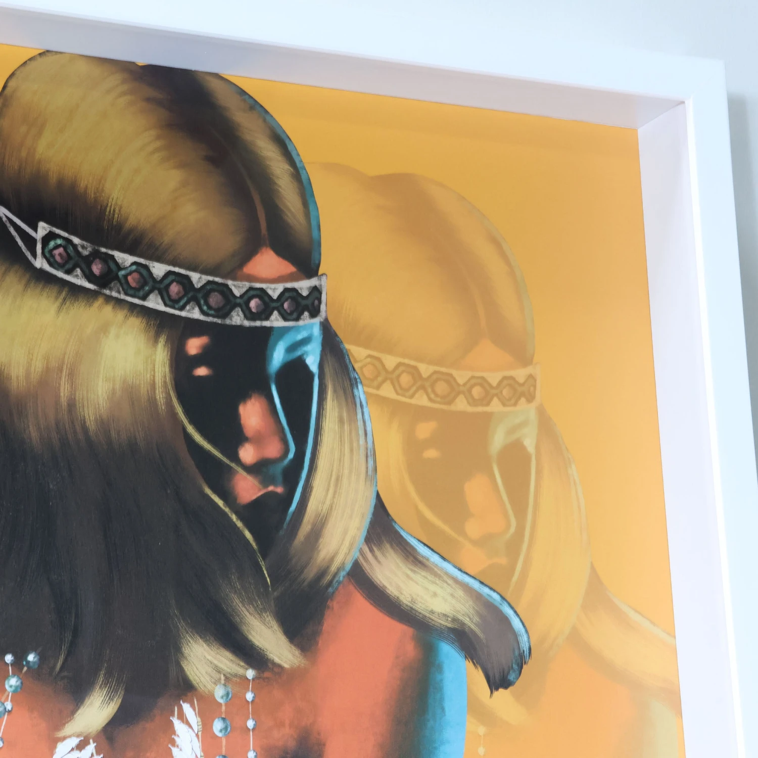 From the Tat Frederick studio. Giclee print on archival paper. Hand placed feathers adorn Wendy’s necklace.Â