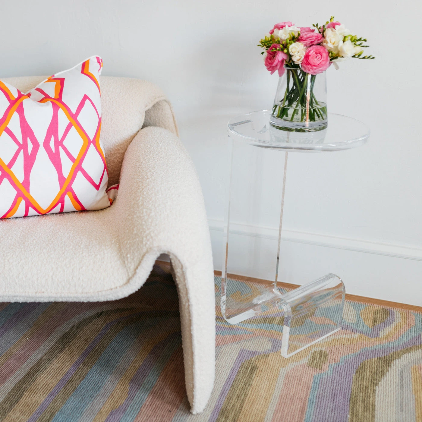 This barely-there acrylic design features a magazine/book holder and minimalist appearance that fits anywhere you need it to.Â